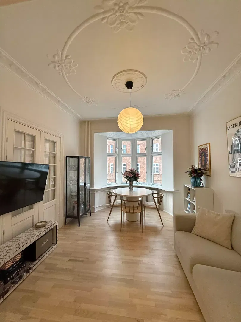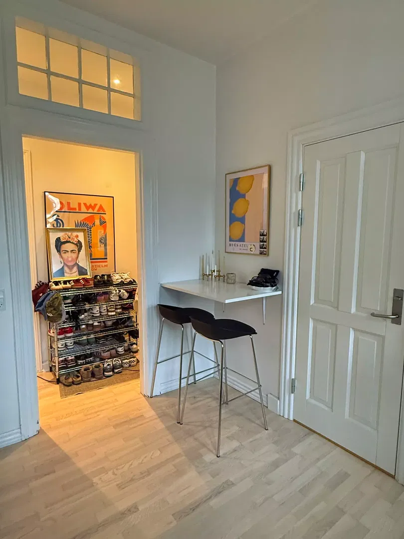 Velkommen til denne lejlighed hvor lys møder klassiske detaljer. En indflytningsklar bolig med en behagelig atmosfære.
