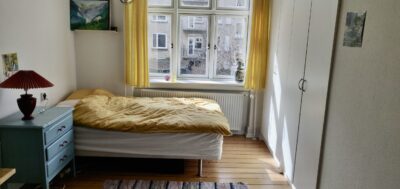 Sidst har vi soveværelset. Det er også et godt rum med plads til seng, skrivebord og klædeskab.