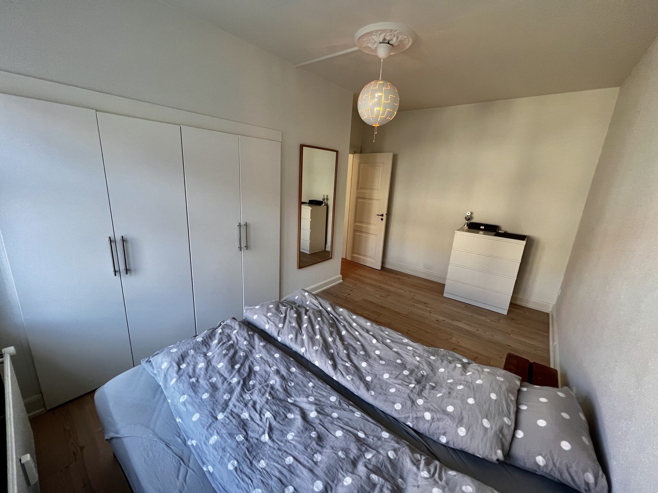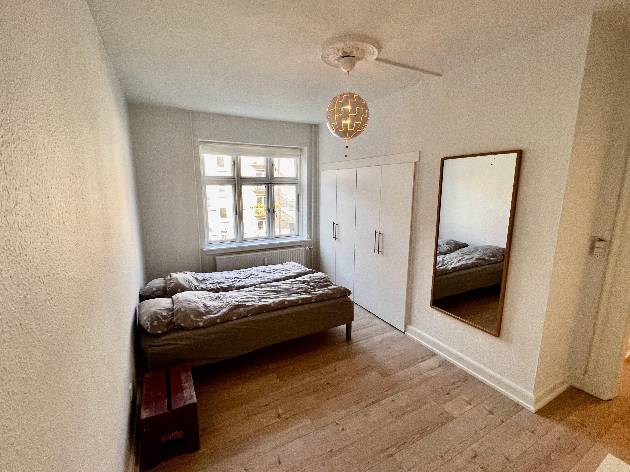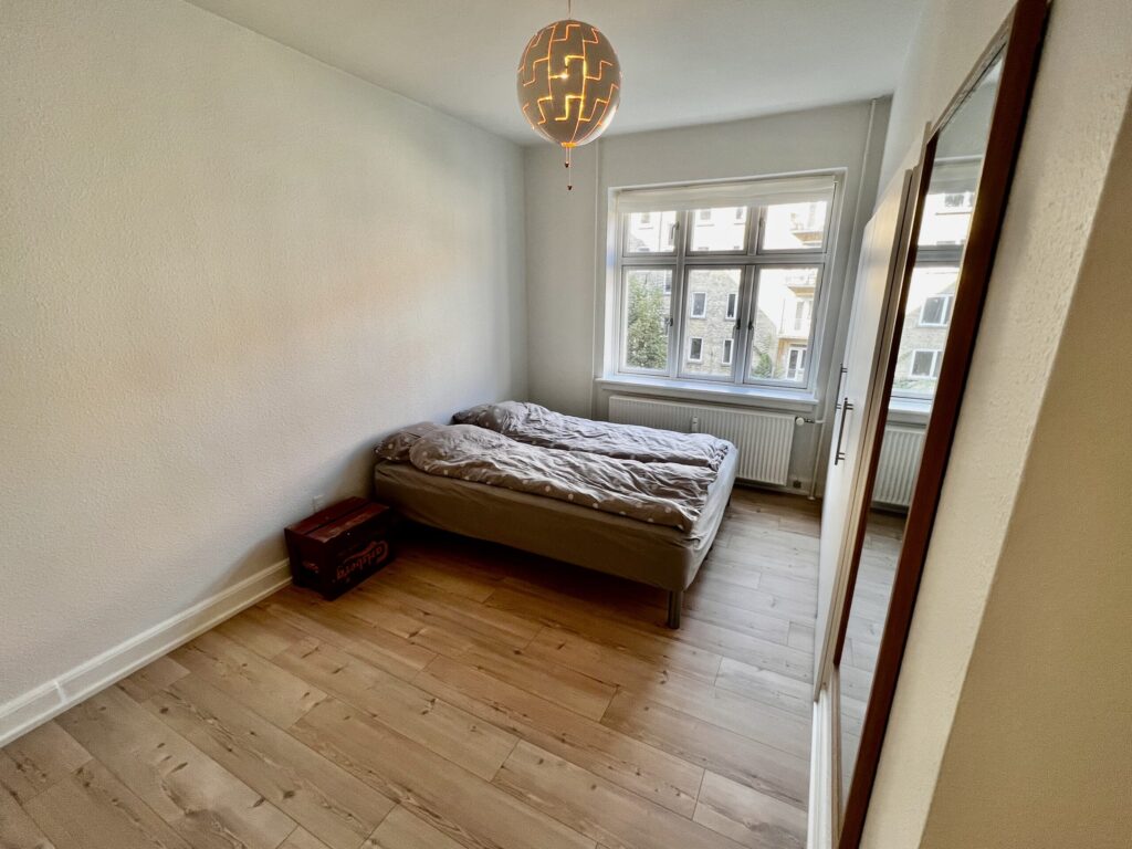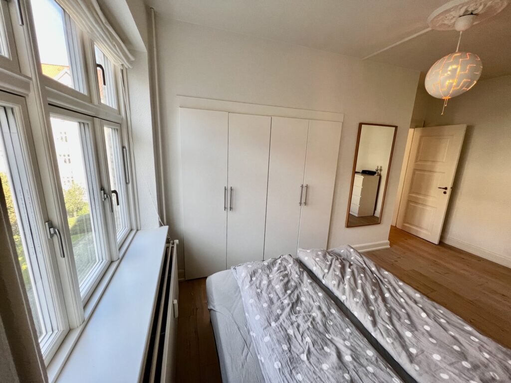 Soveværelset er rummeligt og velindrettet med indbyggede klædeskabe, der giver dig masser af plads til opbevaring af dine ejendele og skaber en skøn, organiseret atmosfære.