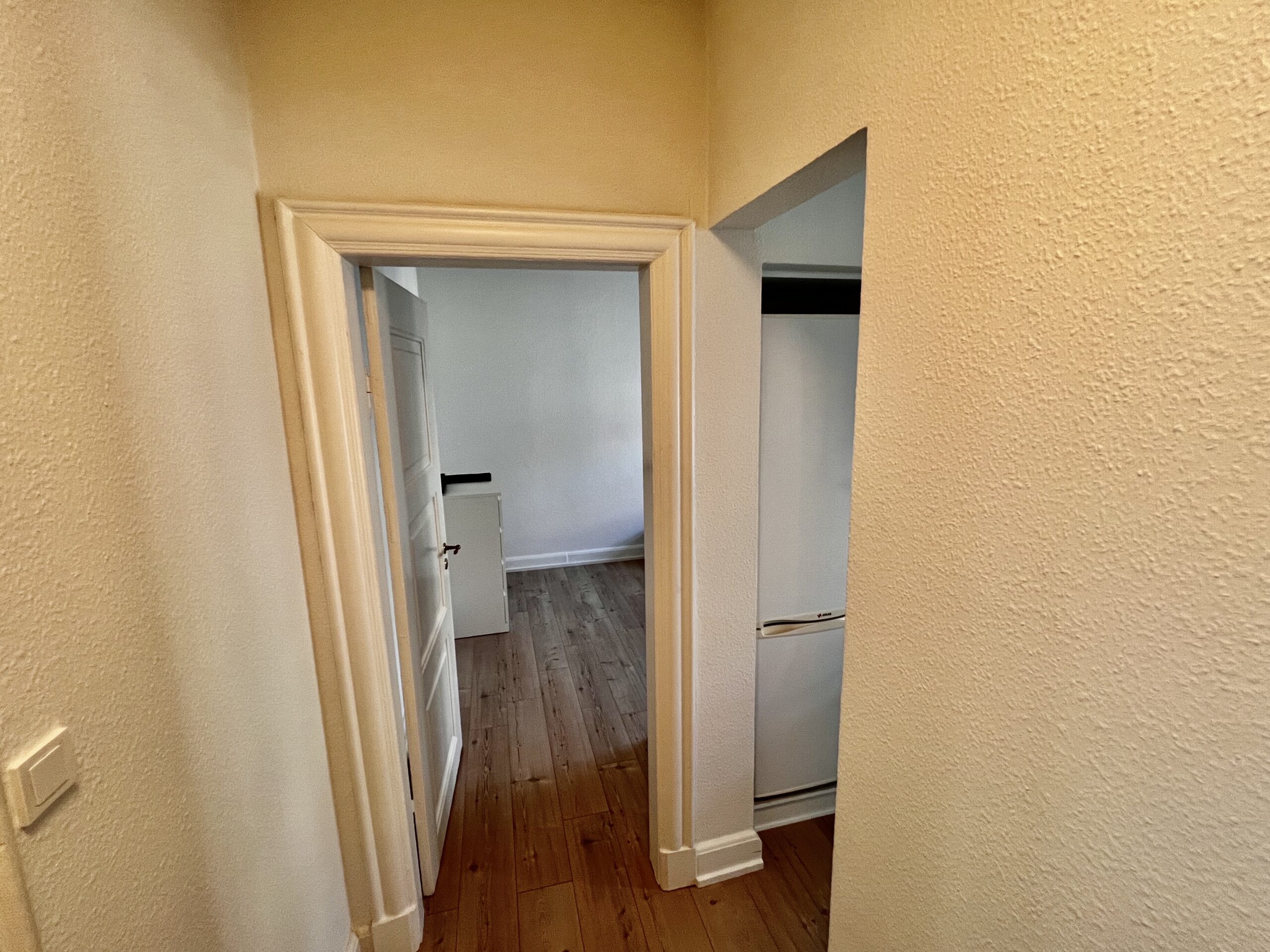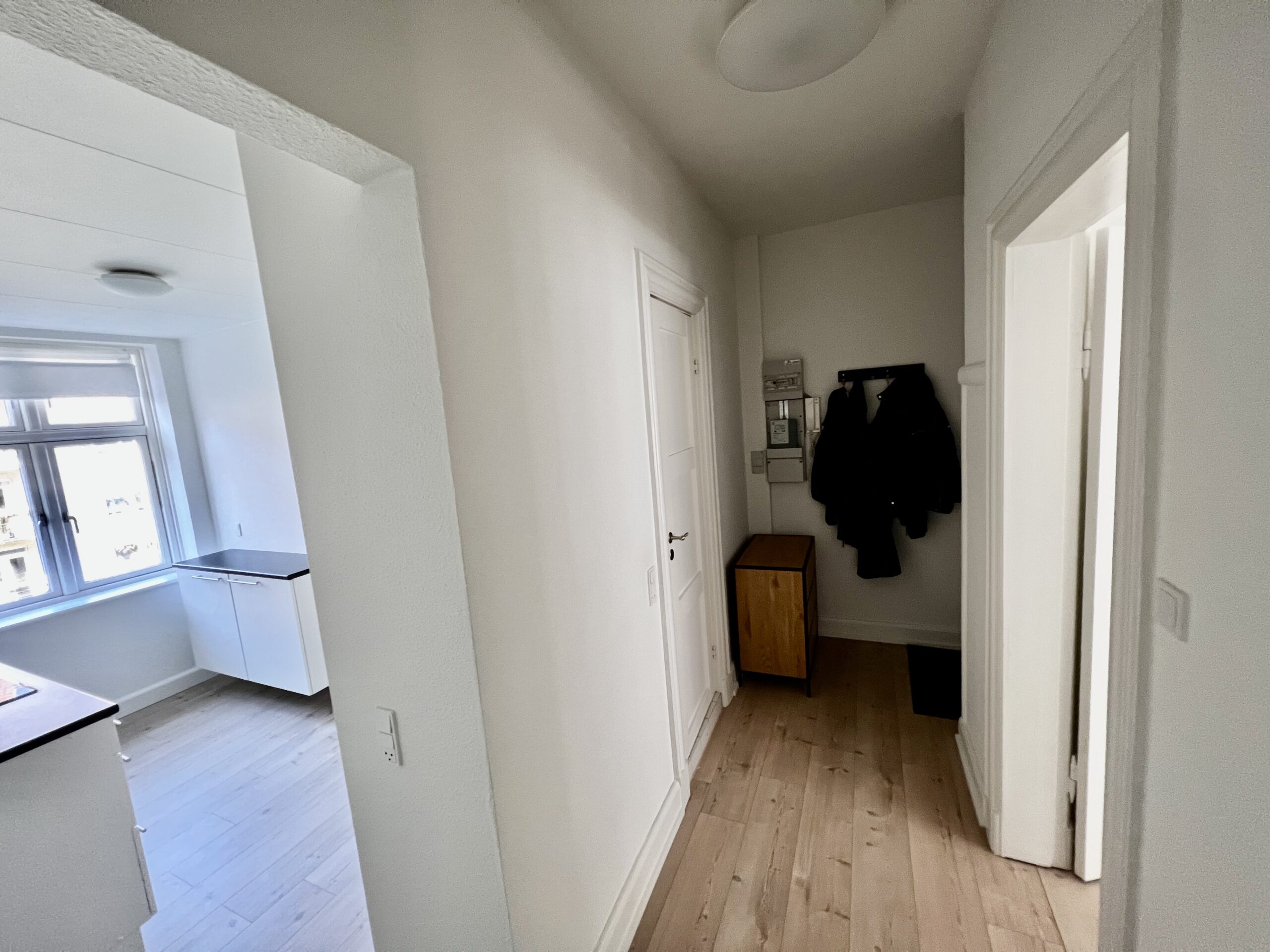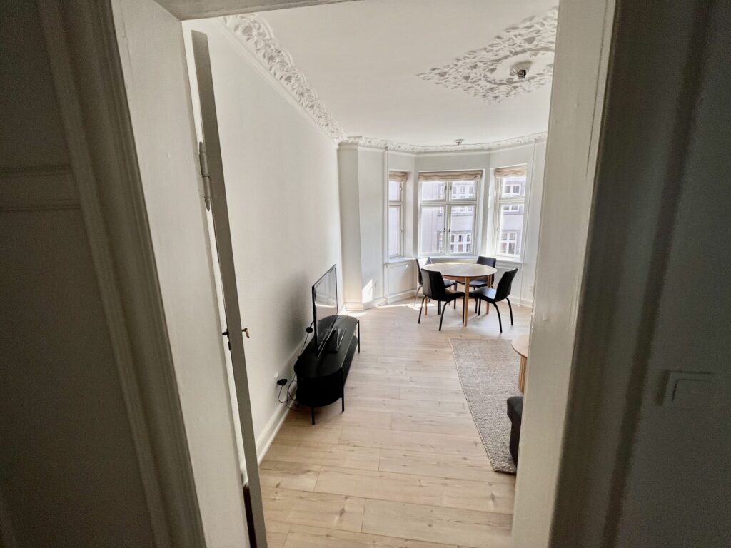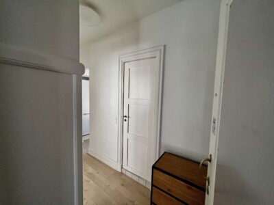 Velkommen til denne charmerende 2-værelses lejlighed på 61 kvadratmeter, hvor tidløs elegance og funktionalitet forenes på smukkeste vis. Gå ind ad døren og træd ind i den rummelige fordelingsgang, der med det samme byder dig velkommen med sin lys og åbenhed, takket være de flotte trægulve, der strækker sig igennem hele lejligheden.