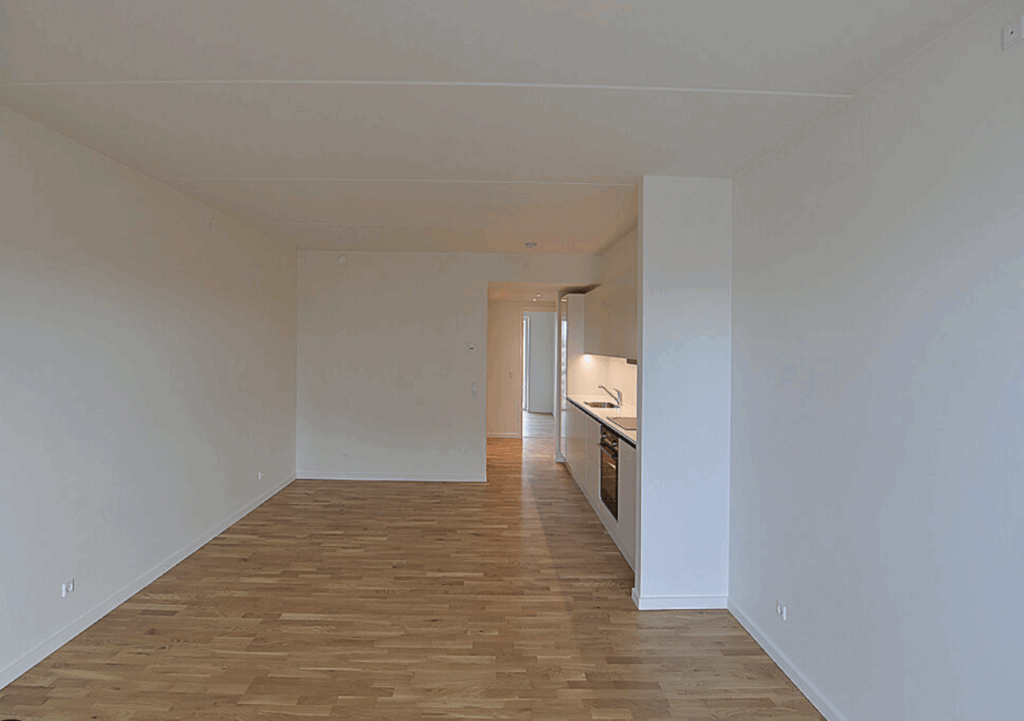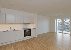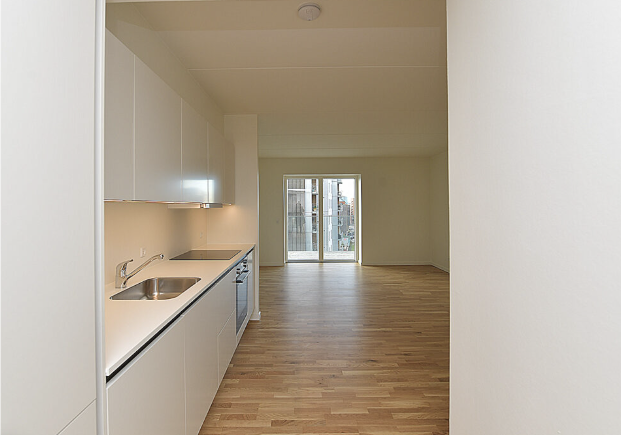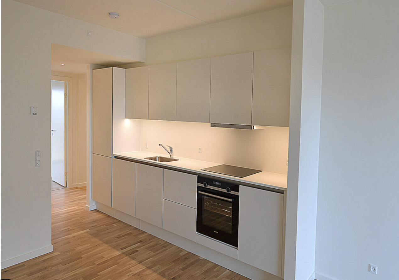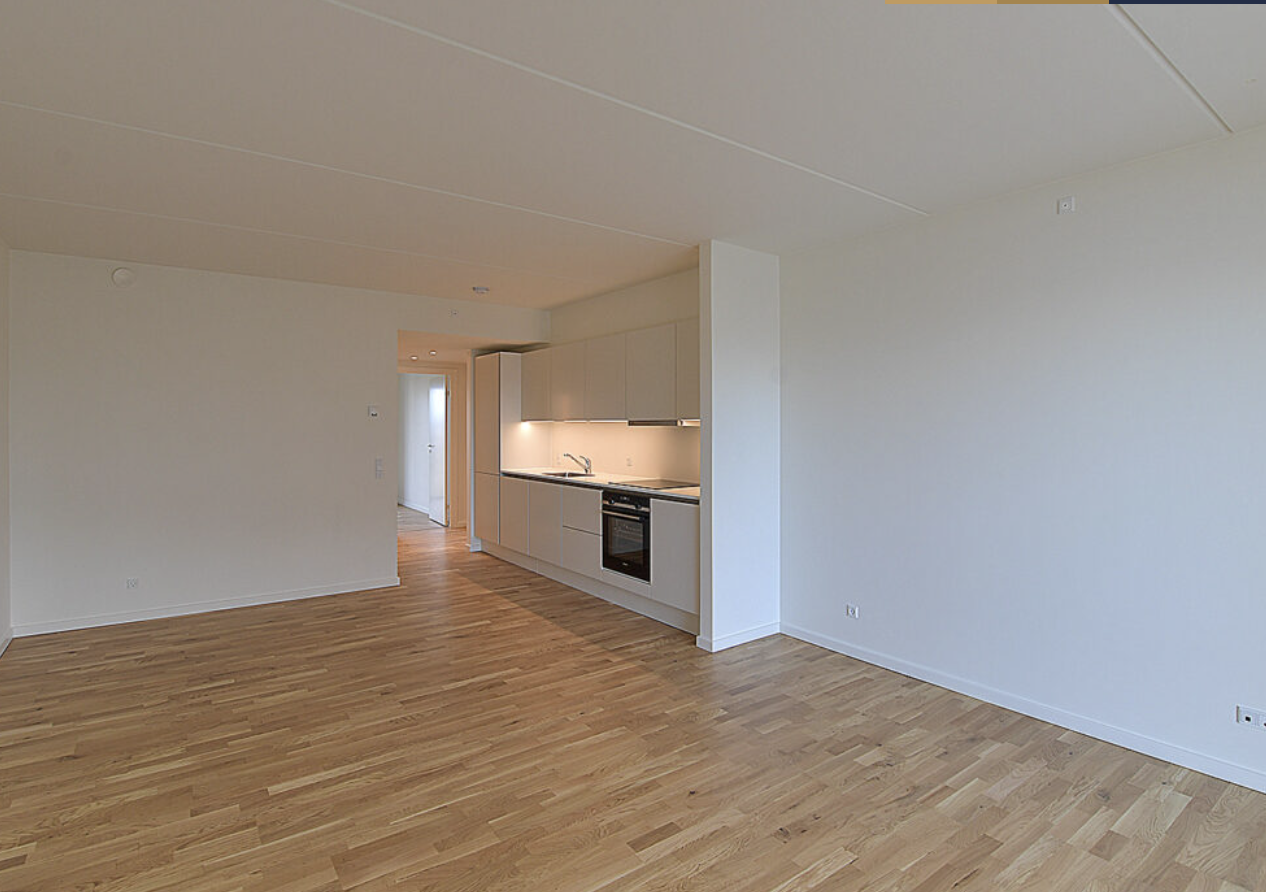 Lejligheden er med alt i hvidevarer, gulvvarme og flotte egetræsparketgulve.