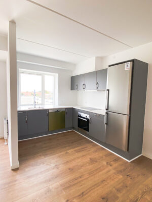 I denne flotte ejendom Downtown Apartments på Bispetorv i Hjørring har vi en af de eftertragtede lejligheder ledige.