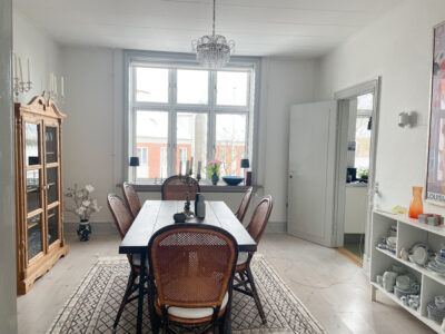 Velkommen til denne smukke 4-værelses herskabelige lejlighed, der kombinerer klassisk charme med moderne bekvemmeligheder. Lejligheden byder på en indbydende entré, som fører direkte ind i de to stuer en-suite. Stuerne er rummelige, har et skønt lysindfald og smukke trægulve, der giver et elegant og varmt udtryk.