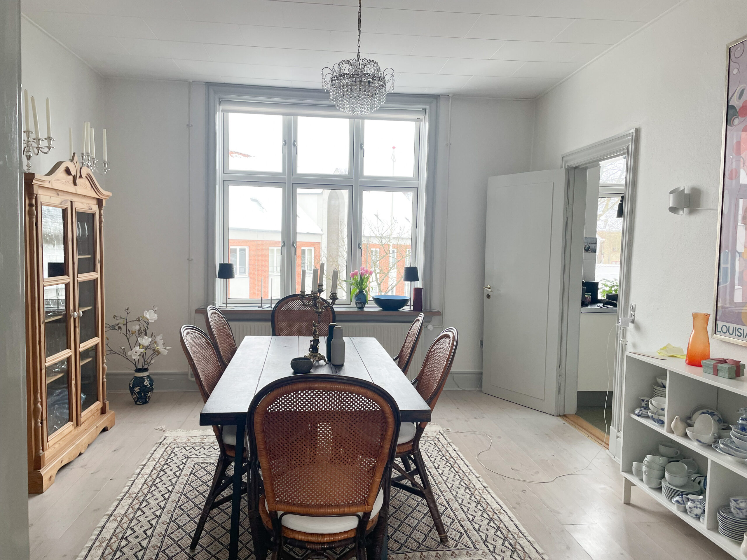 Fra den ene stue er der adgang til lejlighedens køkken, som har god plads til madlavning og opbevaring. Køkkenet er desuden udstyret med opvaskemaskine og har både adgang til bagtrappen samt et praktisk viktualierum.