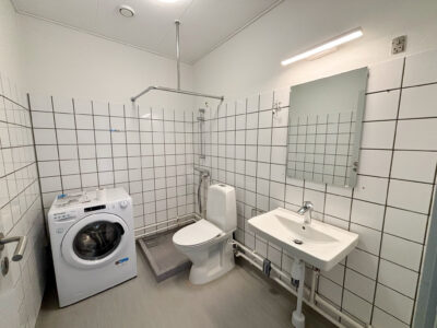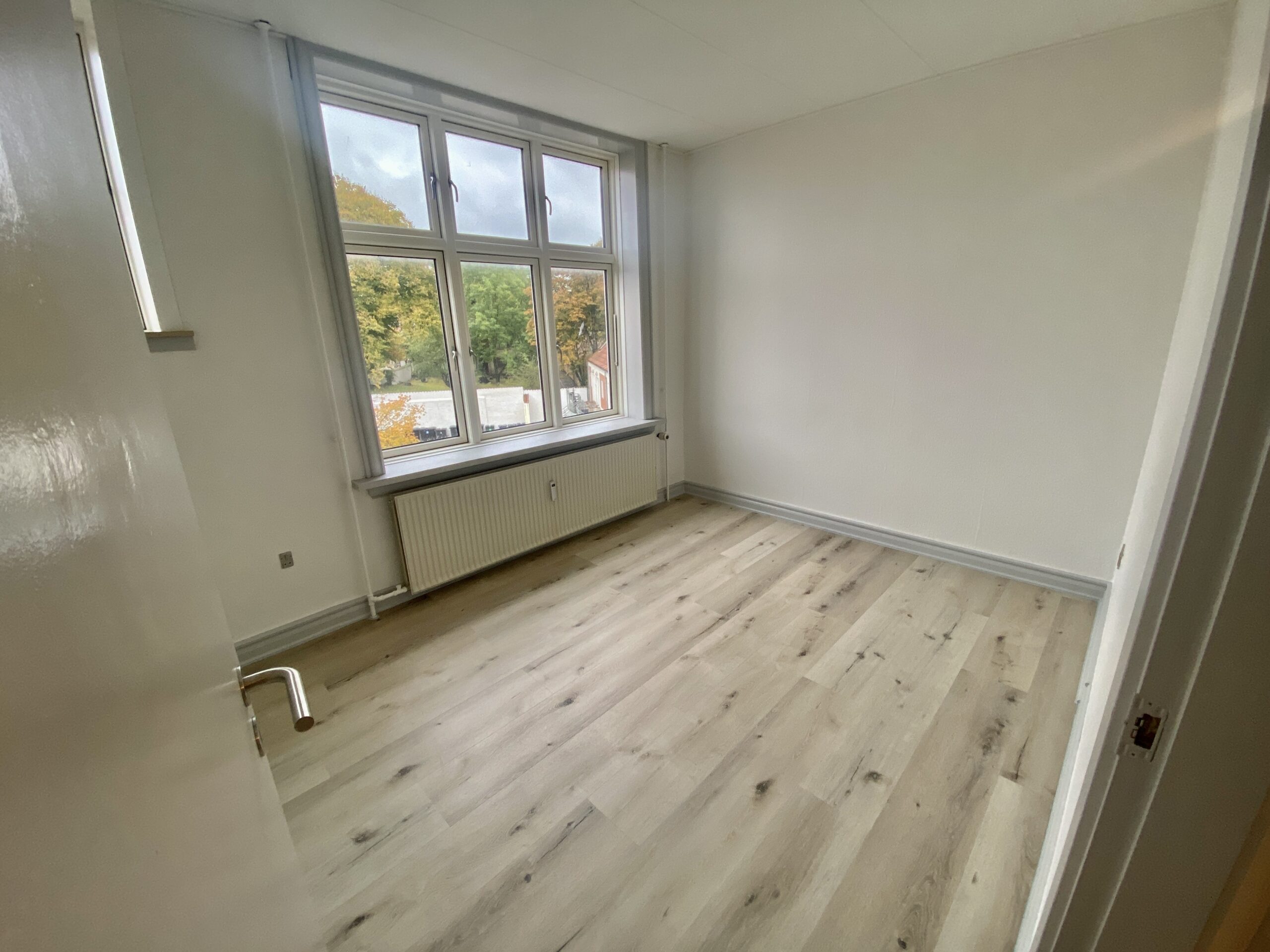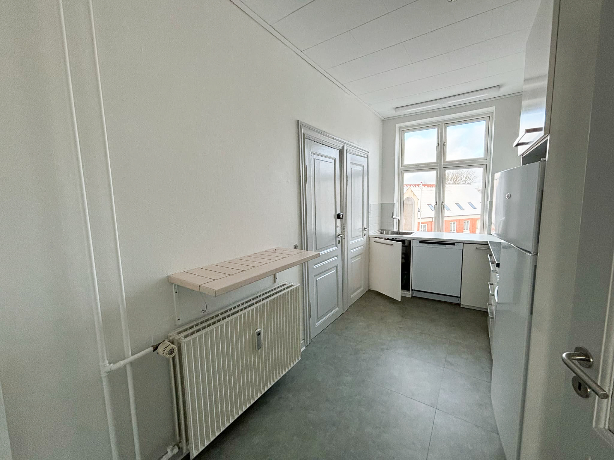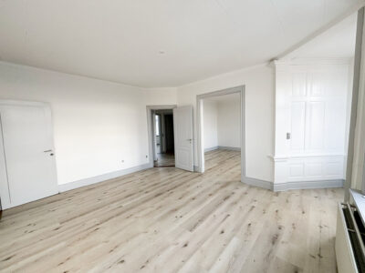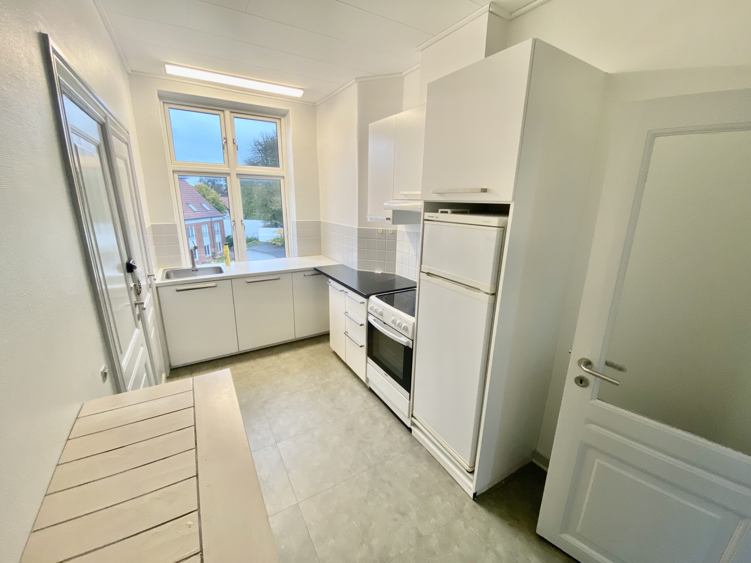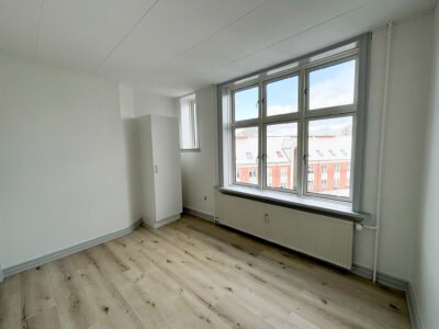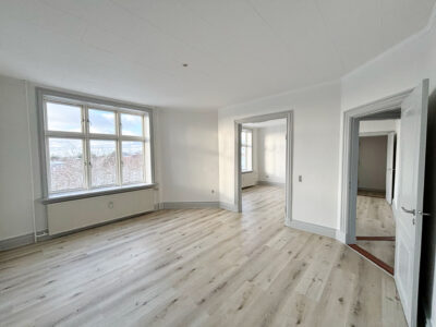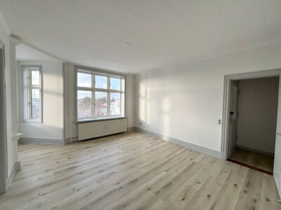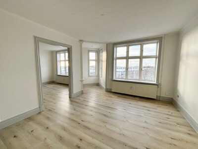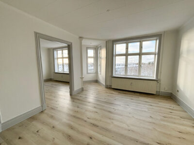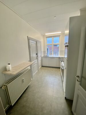 Denne hyggelige lejlighed er renoveret, er centralt beliggende. Den er rimelig stor med 2 gode soveværelser, et stort badeværelse med vaskemaskine og separat brus. Der er et køkken-alrum, hvor man kan sætte en ekstra flytbar køkken-ø ind, som ville passe godt ind. Der er indsat en opvaskemaskine.