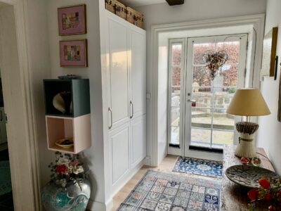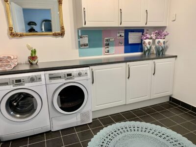 Lejligheden er bestående af en god entré med indbyggede skabe til overtøj og sko m.m. Her er der også mulighed for at gøre noget ud af indgangen. Lige efter entreen har vi et stort bryggers, hvor der også er et toilet. Der er godt med bord -og skabsplads og indeholder både vaskemaskine og tørretumbler.