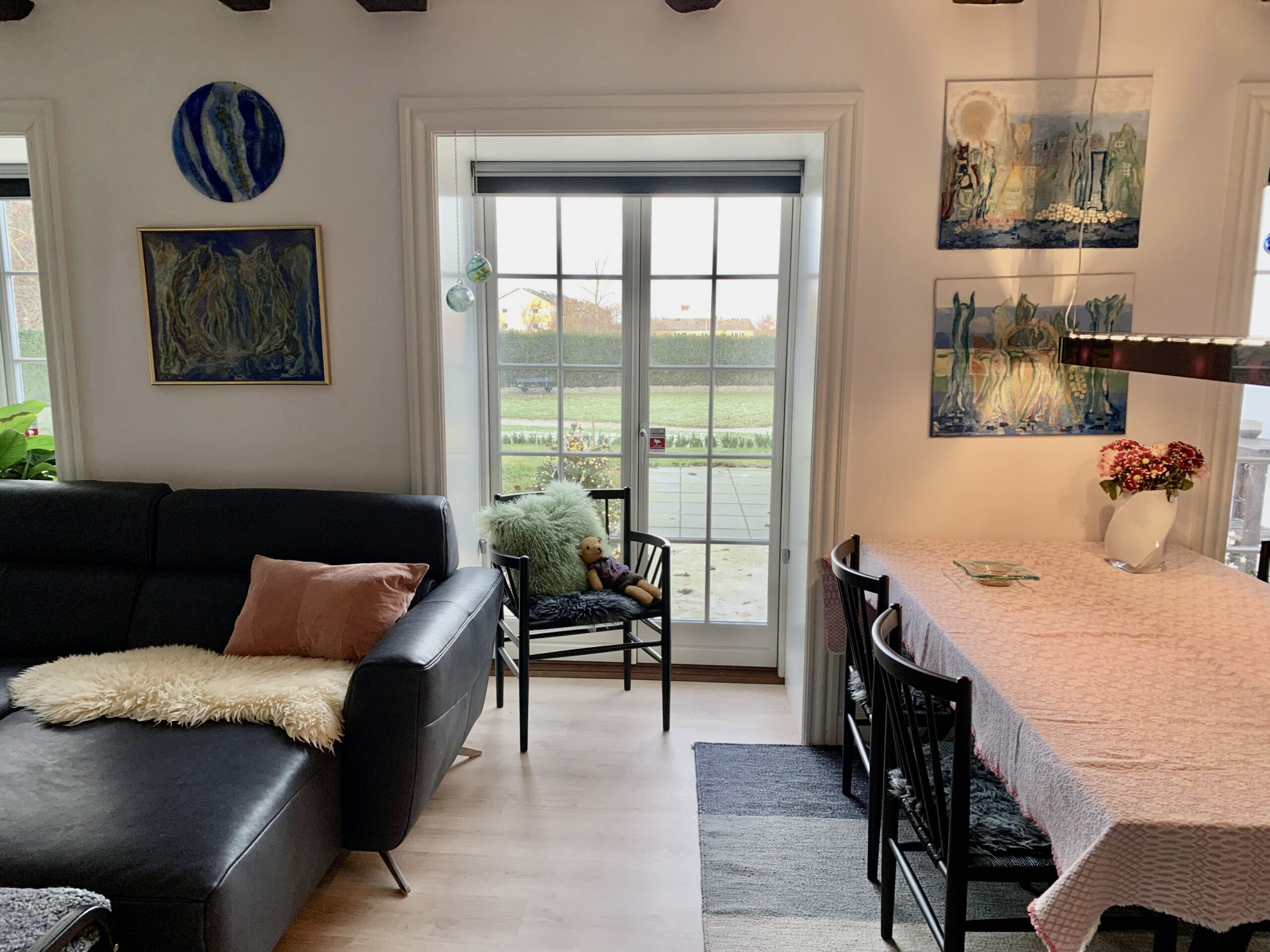 Som man kan se på billederne bliver der lagt op til et spisebord i midten og sofahjørne i sidste del af rummet. I forbindelse med køkken-alrummet har vi soveværelset, som har masser af skabsplads, og som også har egen udgang til terrasse.