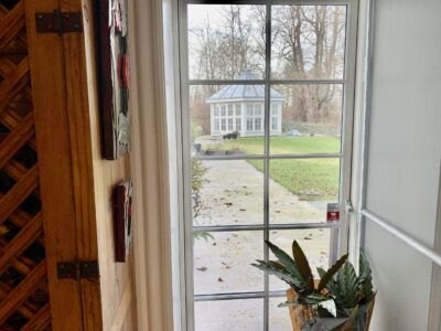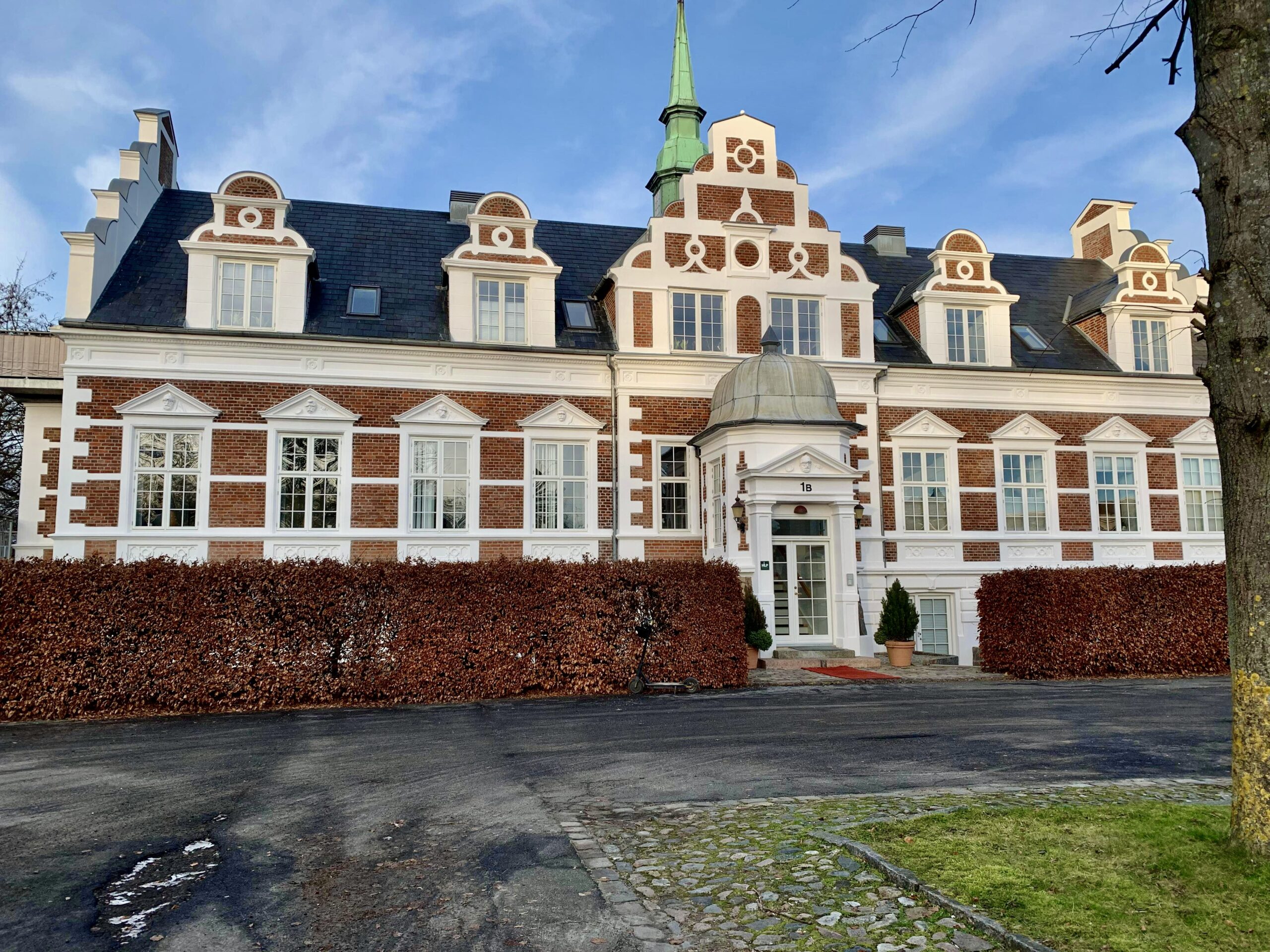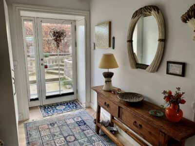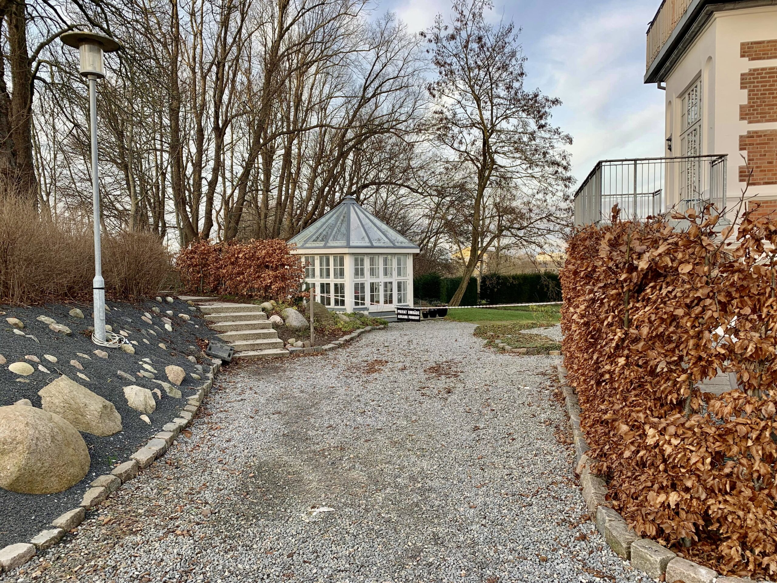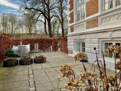 Ude ved indgangen er der ligeledes en terrasse, som vender mod syd og dermed har sol stort set hele dagen.