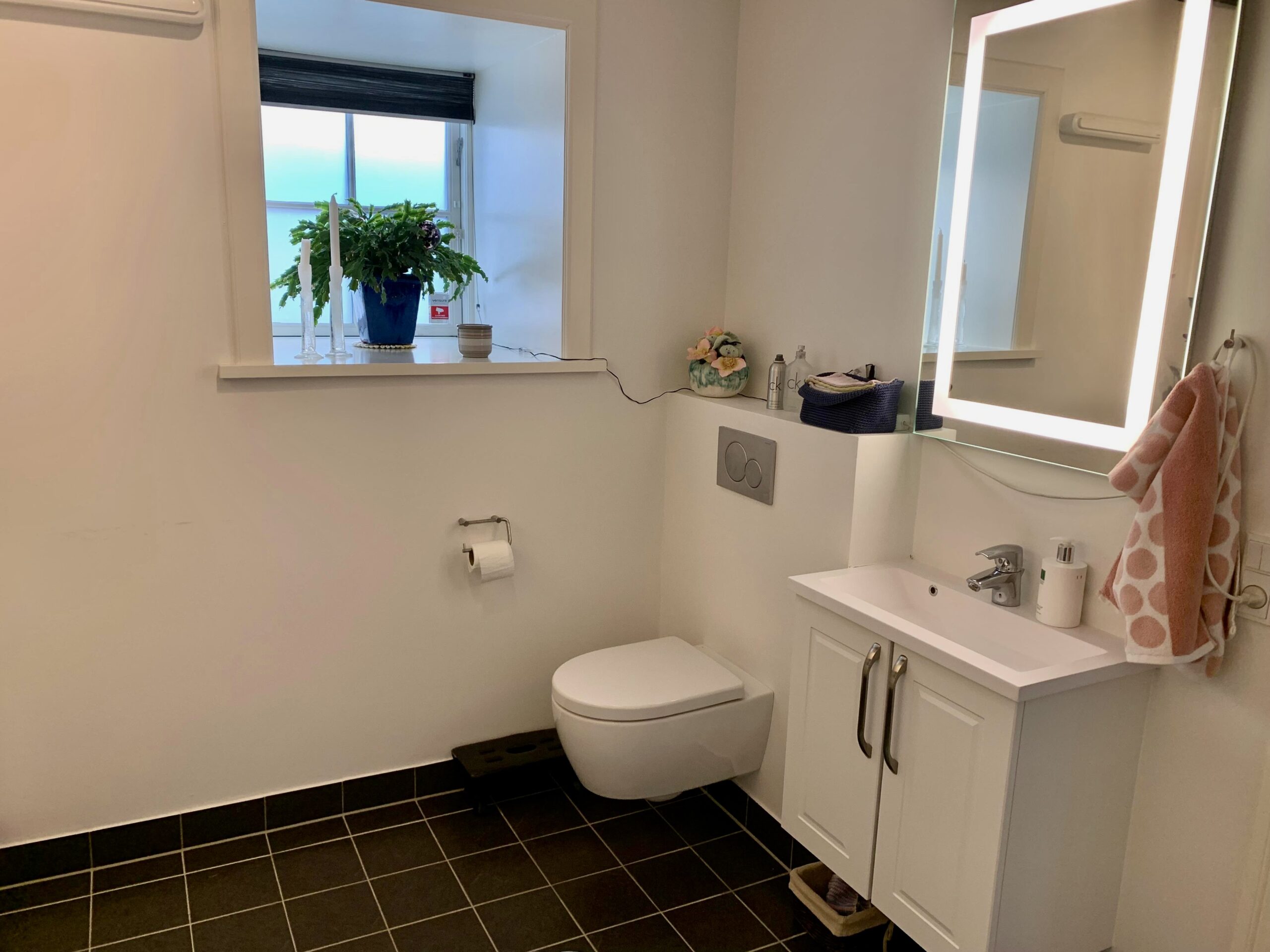 Så altså har lejligheden, et toilet/bryggers, et badeværelse, tre soveværelser og et køkken-alrum.