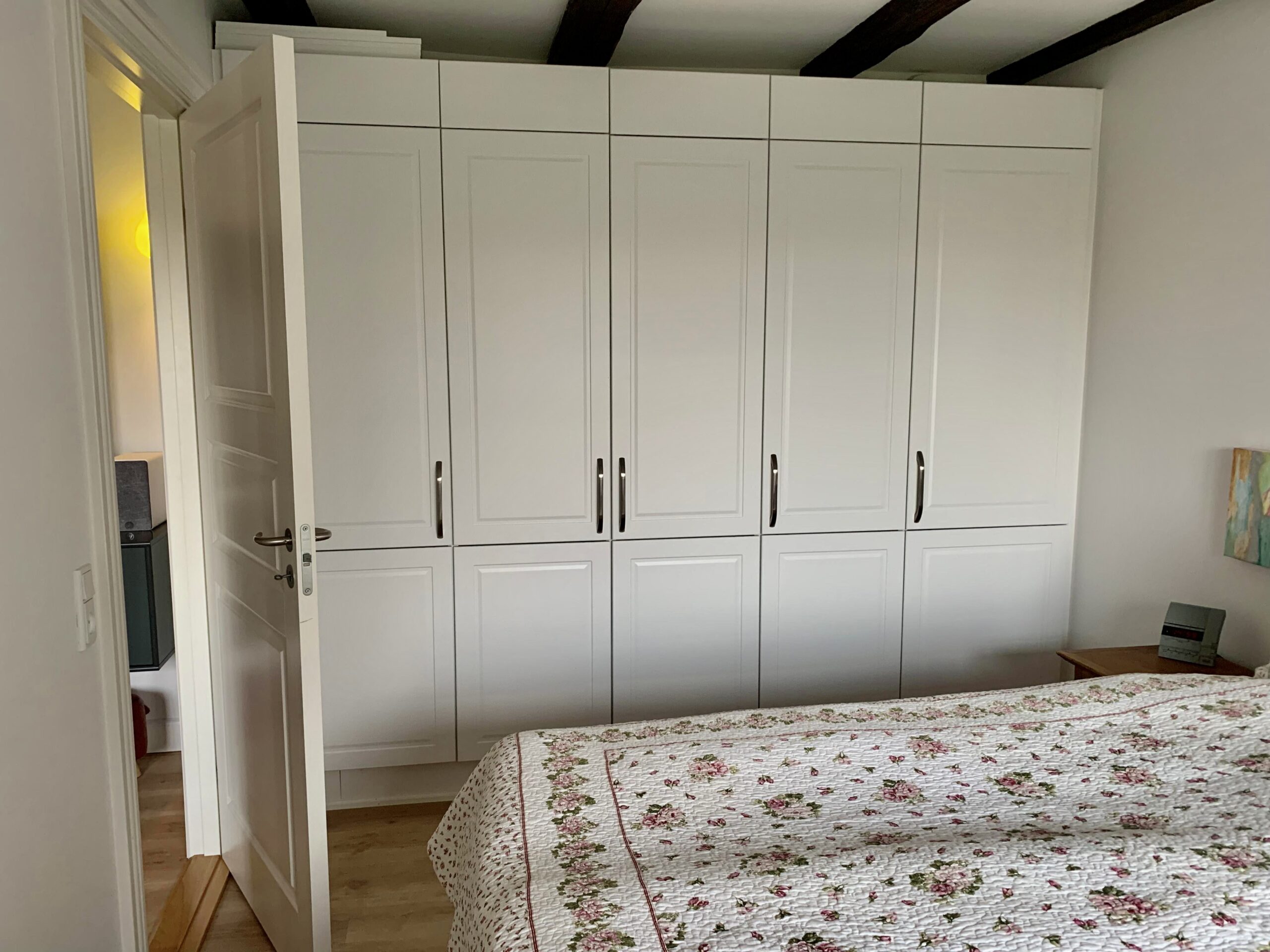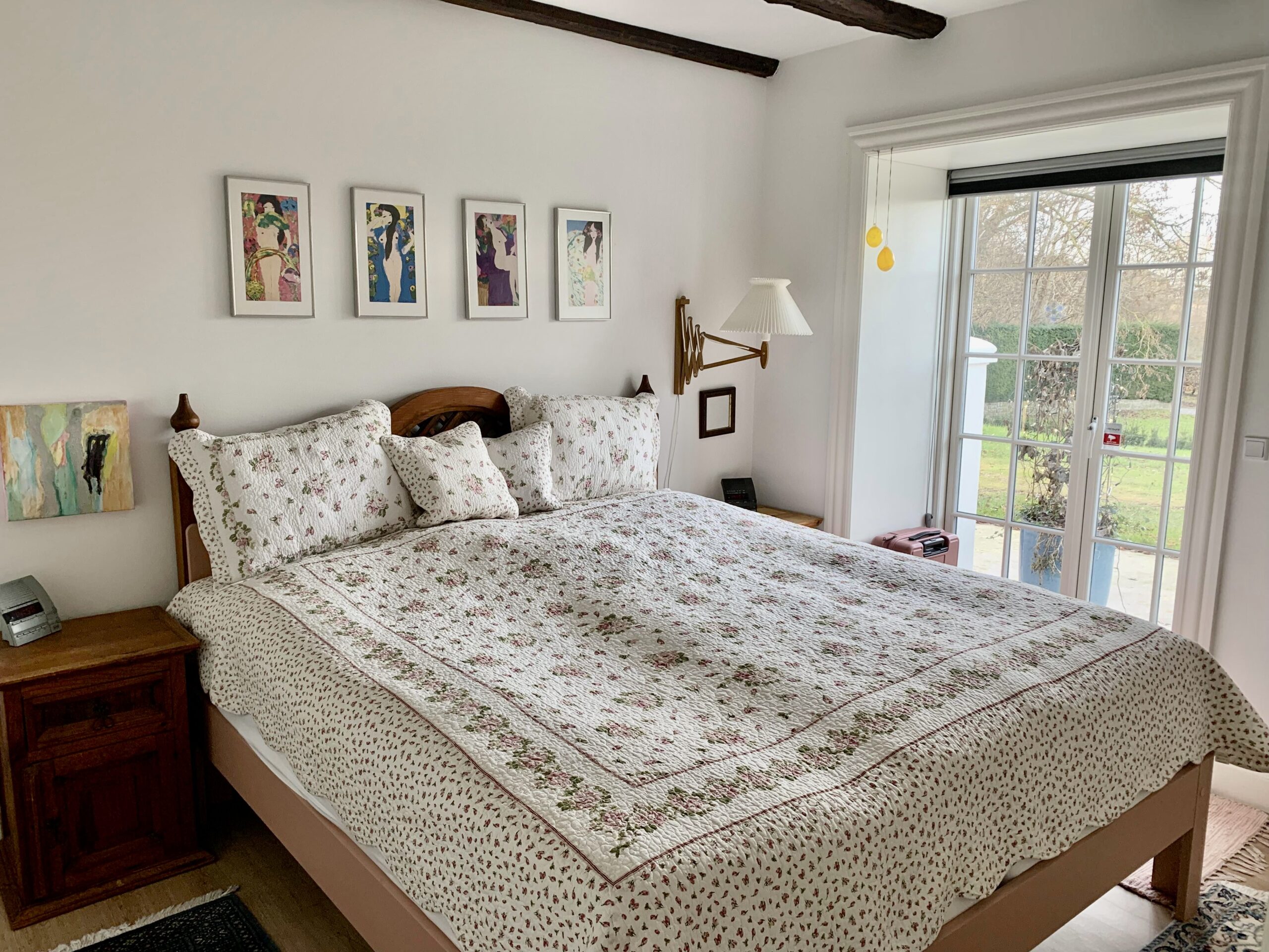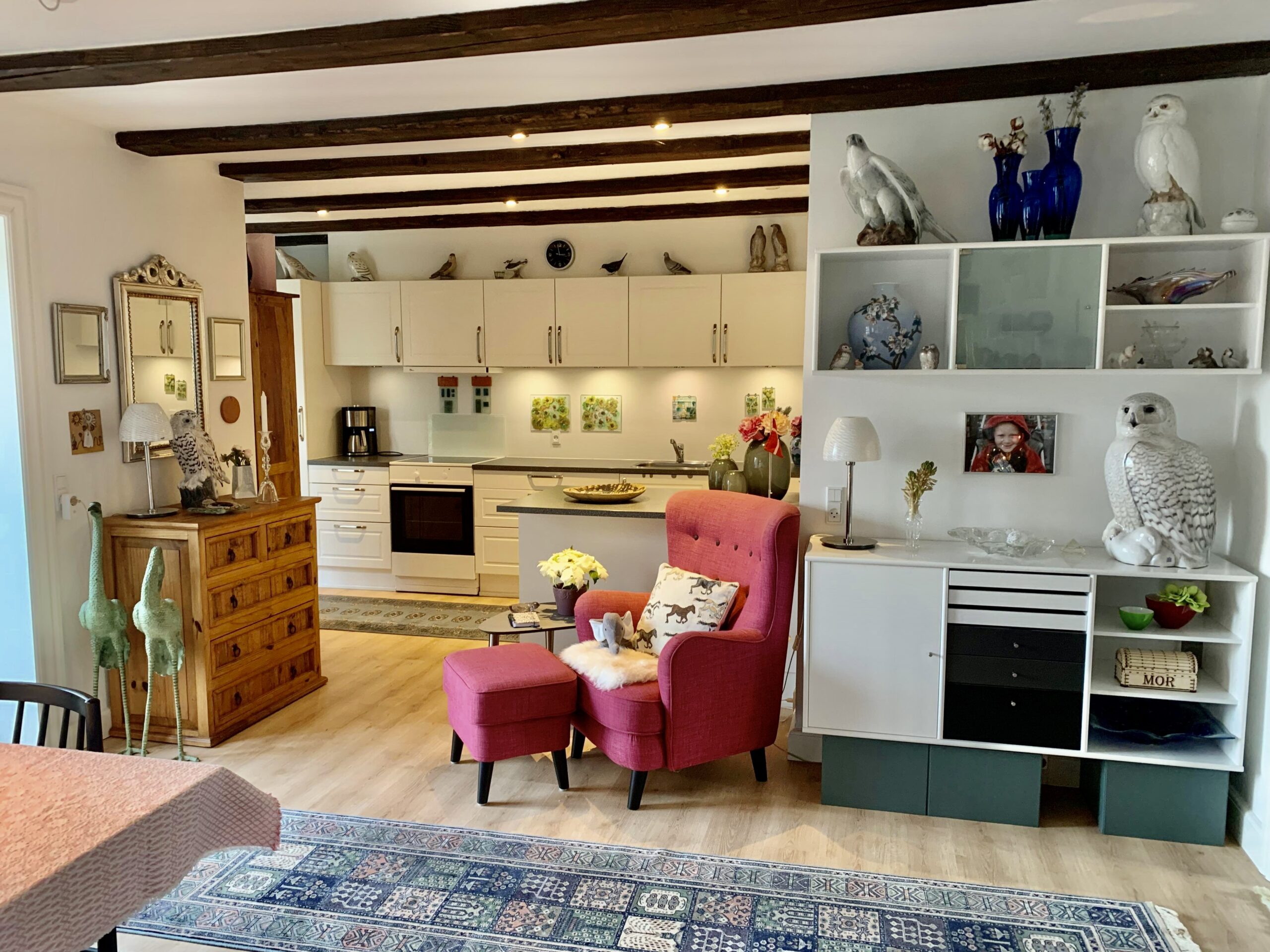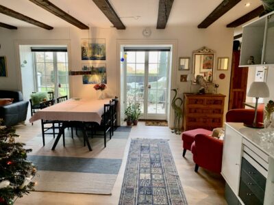 Denne store lejlighed er virkelig hyggelig med bjælker i loftet og flotte vinduer, og stadig med et moderne touch med nye materialer, gulvvarme og lækre klædeskabe.