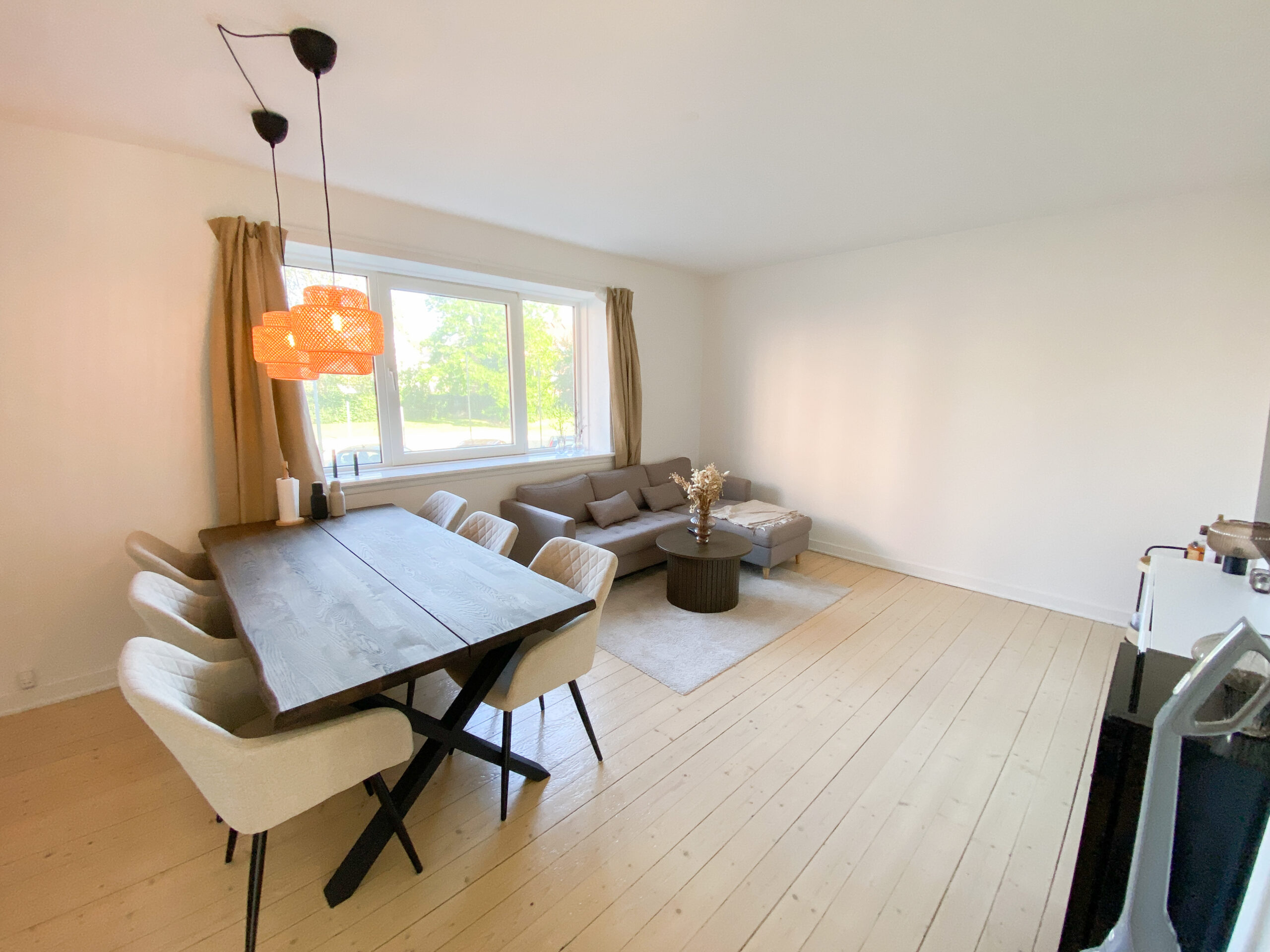 Stuen er lejlighedens naturlige samlingspunkt og byder på en praktisk rektangulær form, som gør det nemt at indrette med både spiseområde og sofa/tv-hjørne. Et funktionelt og hyggeligt rum med masser af indretningsmuligheder.