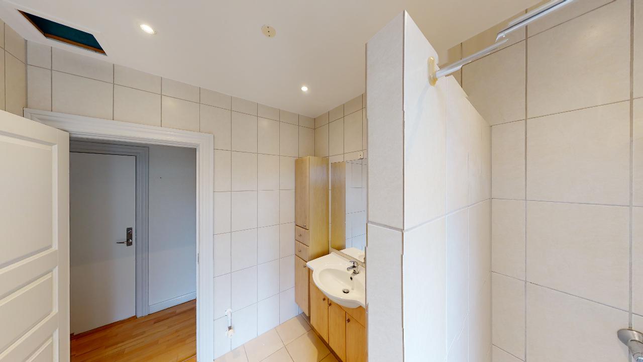 Køkkenet er praktisk indrettet og udstyret med moderne faciliteter, som gør madlavning til en fornøjelse. Badeværelset er funktionelt og nyder godt af et lyst og luftigt design, der bidrager til den samlede komfort.