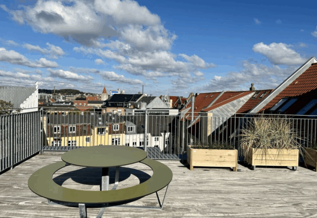 Smuk herskabslejlighed indeholdende stor lys stue i åben forbindelse til lækkert Invita køkken og med adgang til dejlig stor altan, entré med skabe, dejligt badeværelse, stort soveværelse med god skabsvæg samt værelse, ligeledes med god skabsplads. Flotte plankegulve i matlakeret egetræ i stue/køkken, entré samt i begge værelser. I badeværelset er der flotte lyse klinker. Interiøret i alle rum er fra Invita. Der er brugsret til én af Aalborgs bedste tagterrasser med smuk udsigt over Aalborg/Nørresundby, ligesom der er brugsret til en fælles terrasse i 1. sals plan. En lejlighed der virkelig skal opleves.