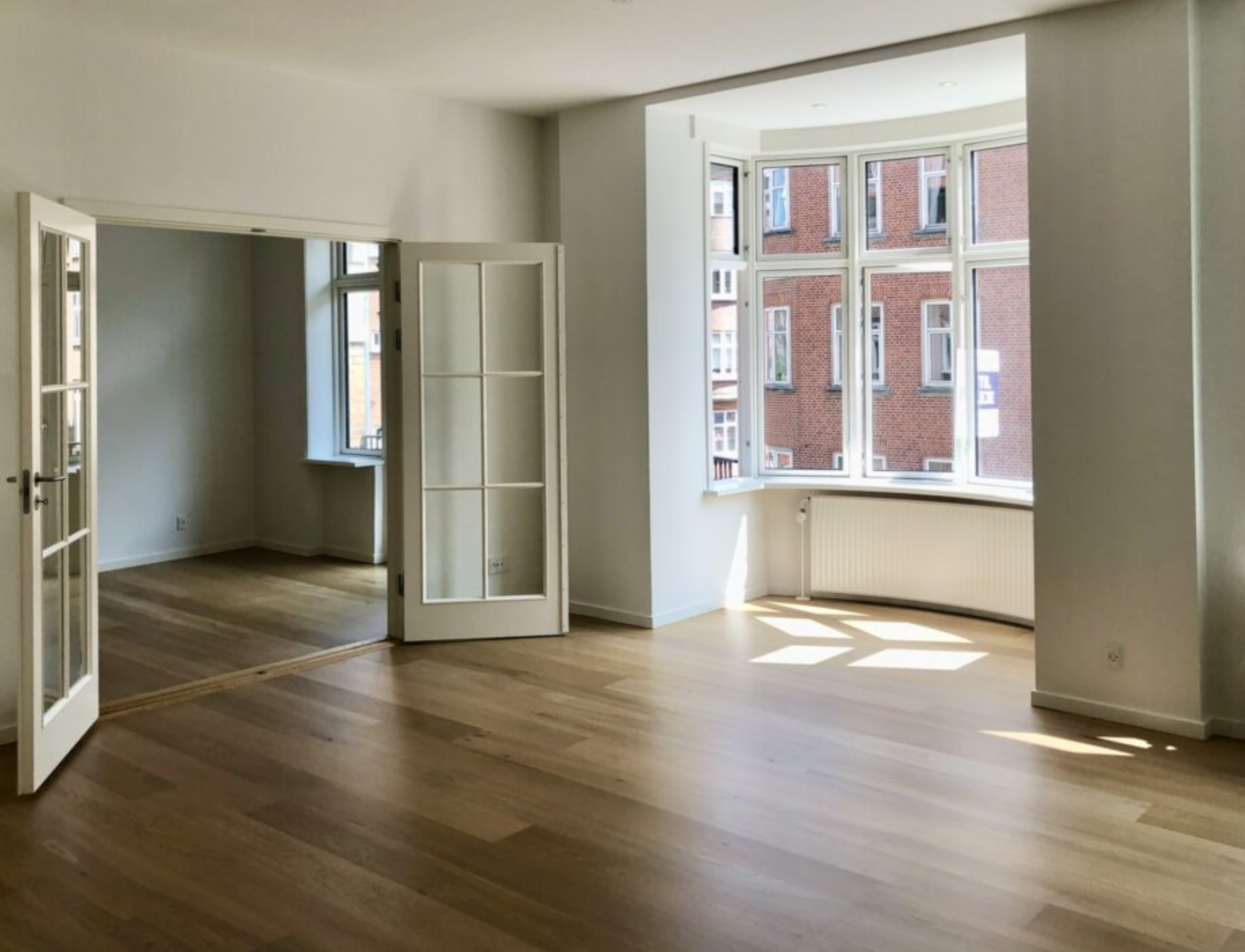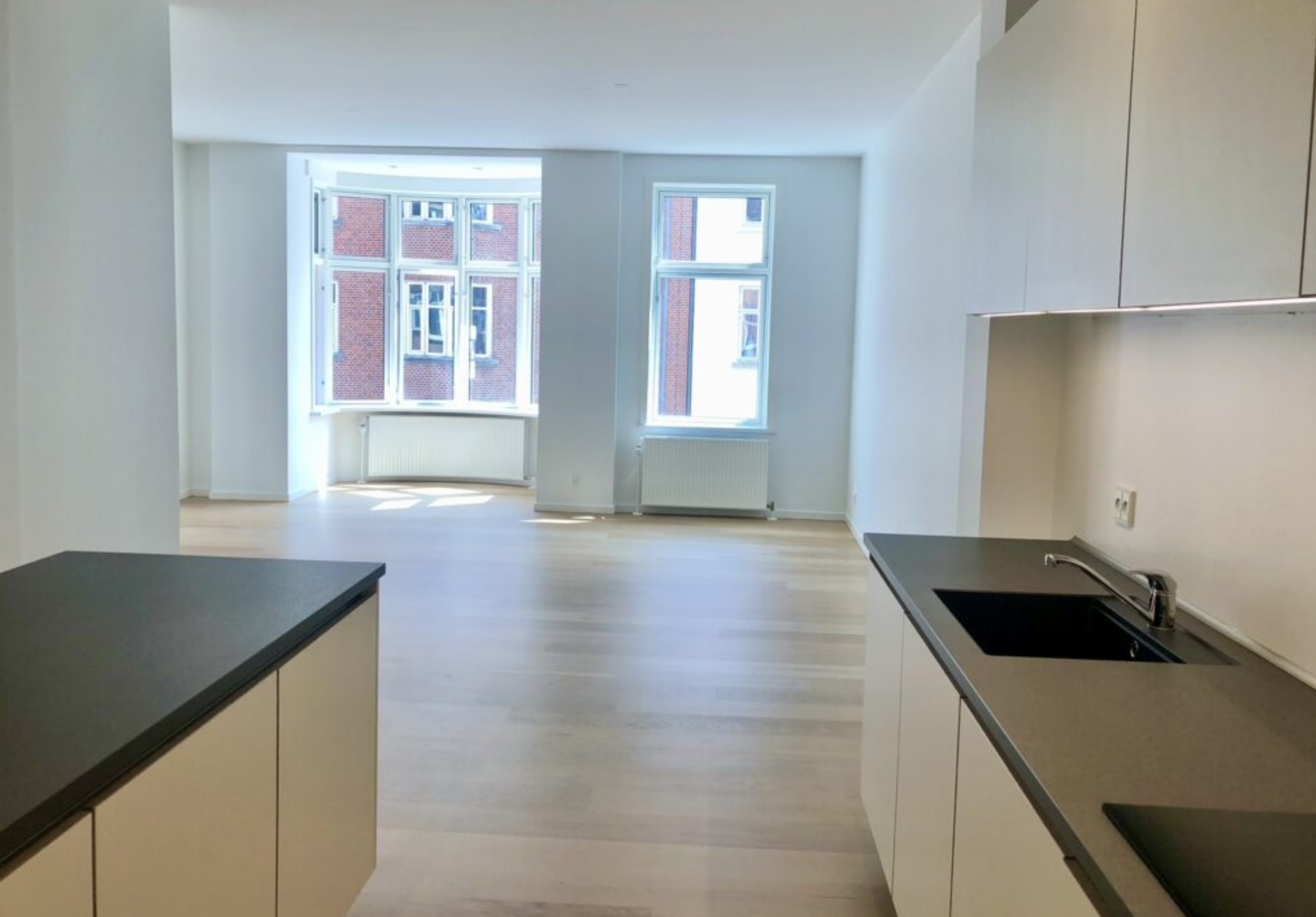 Denne rummelige og velindrettede 5-værelses lejlighed byder på moderne komfort og en gennemtænkt planløsning, der gør boligen både funktionel og indbydende. Lejlighedens hjerte er det lækre køkken fra Invita, som ligger i åben forbindelse med en stor, lys stue. Her er der både plads til hverdag og gæster, og fra stuen er der adgang til en hyggelig karnap med udsigt mod Boulevarden samt udgang til en af lejlighedens to altaner.