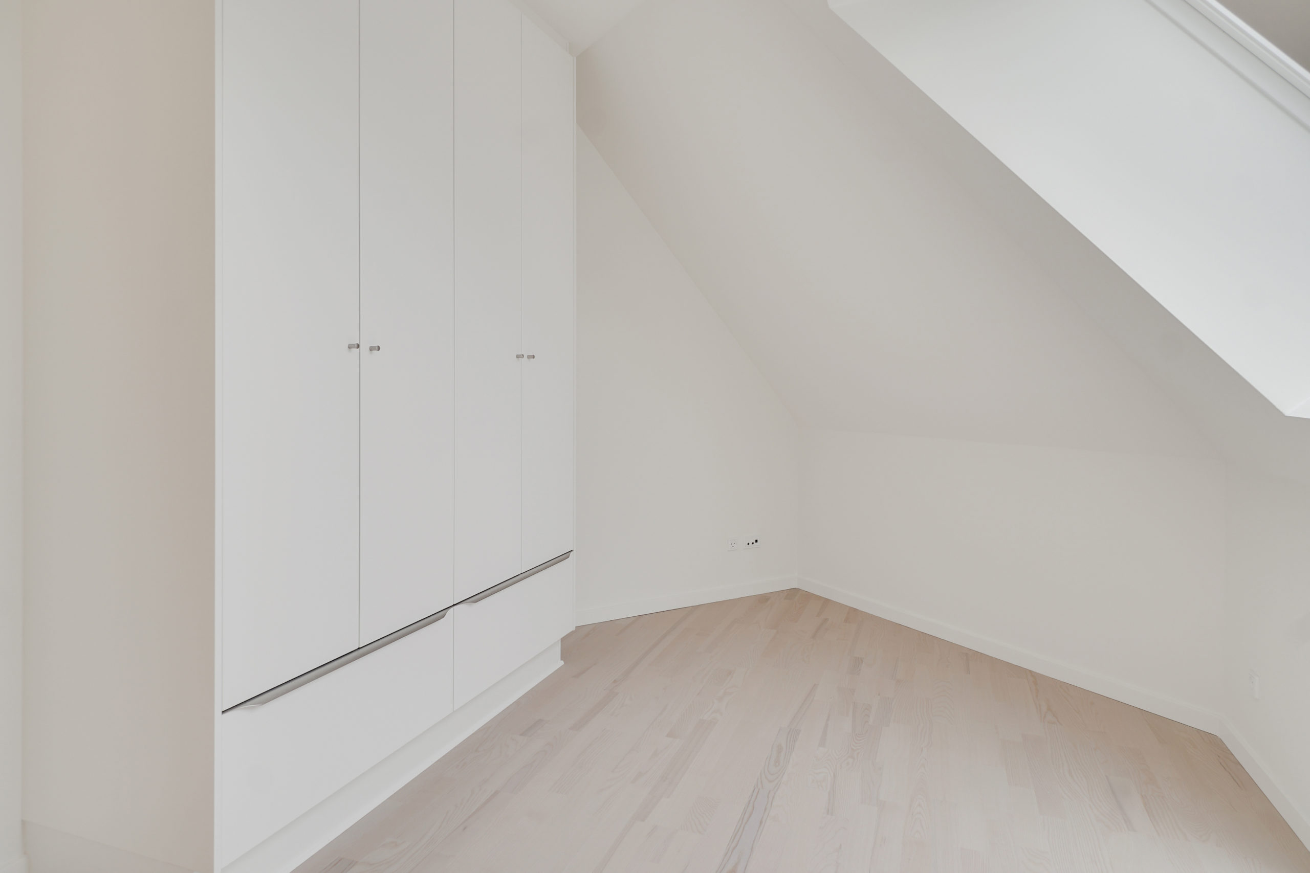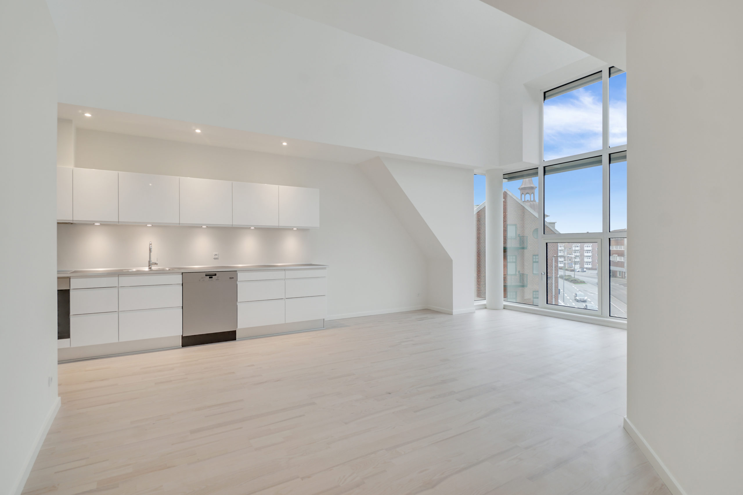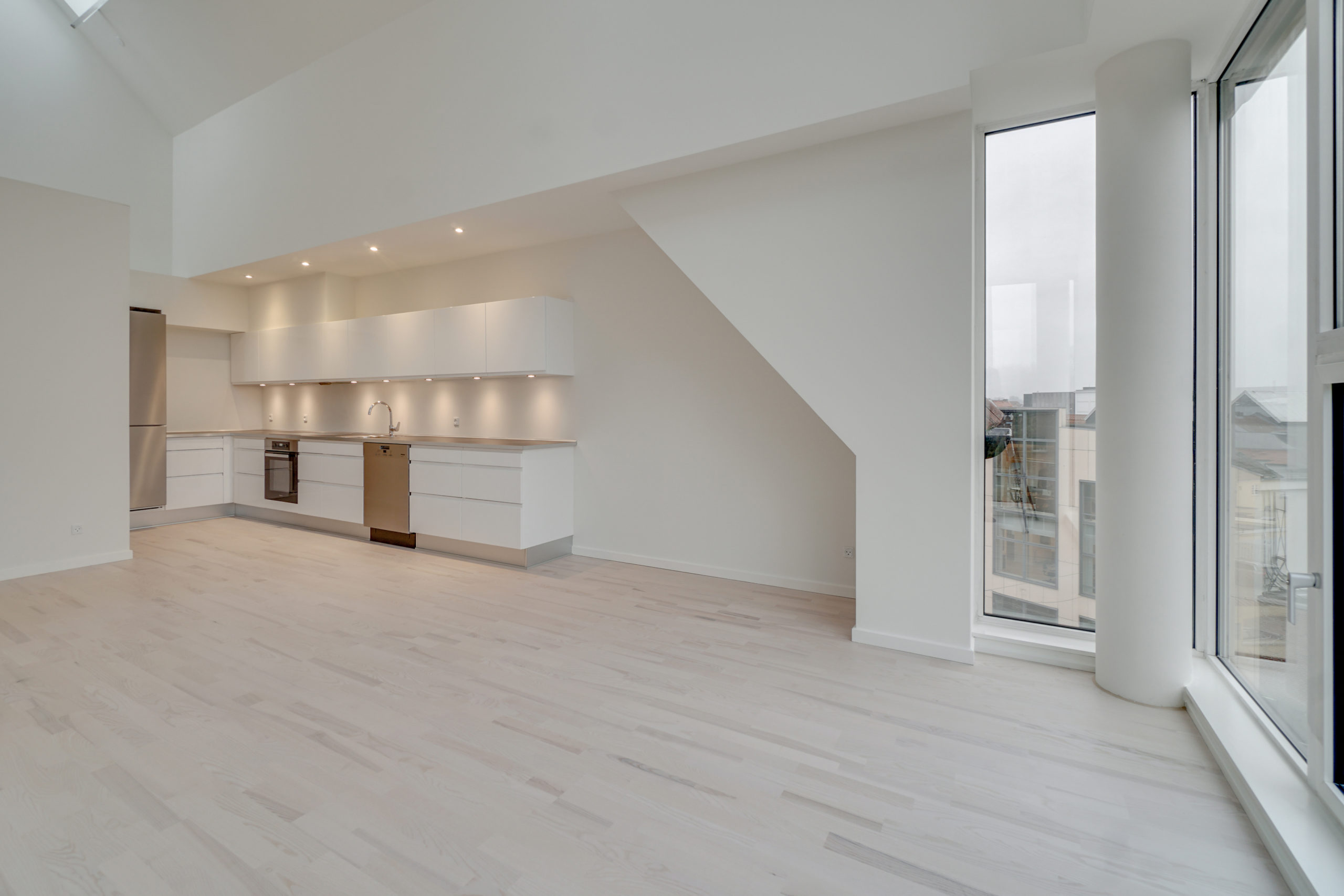 Lejligheden byder på en rummelig entré med faste skabe, der fører ind til et lækkert badeværelse udstyret med bruseniche og væghængt toilet, samt egen vaskemaskine og tørretumbler. De to store værelser giver masser af plads og har også faste skabe. I det stilfulde højglans køkken finder du alle hårde hvidevarer fra Miele, herunder opvaskemaskine, og køkkenet er i åben forbindelse med den lyse stue, der prydes af en stor glaskanap og elegante søjler. Overalt i boligen er der flotte parketgulve og behagelig gulvvarme, der skaber en varm og indbydende stemning.