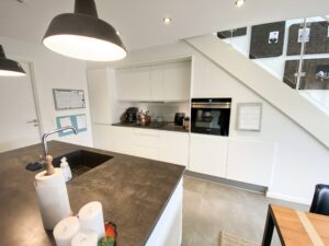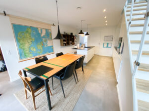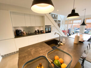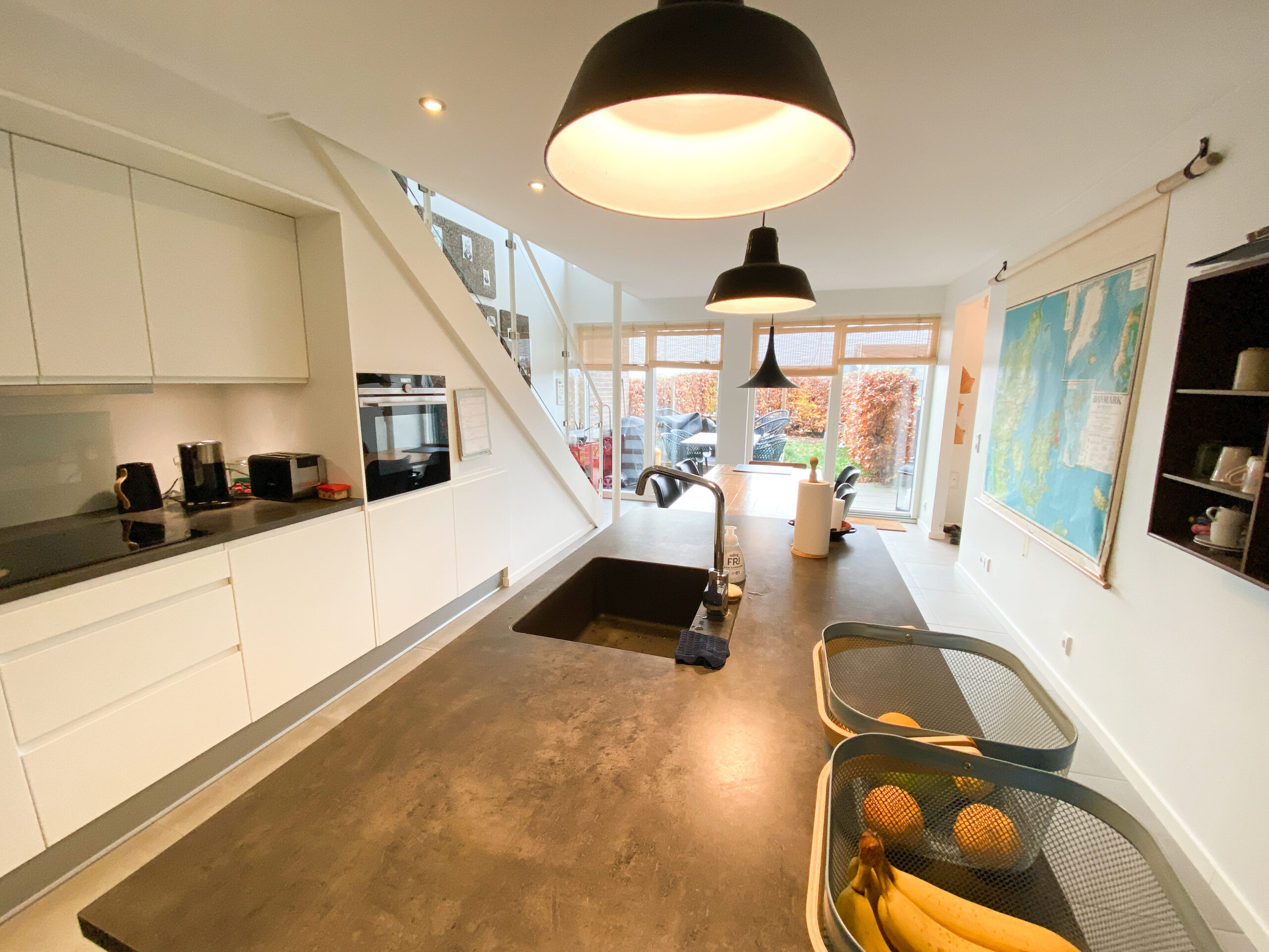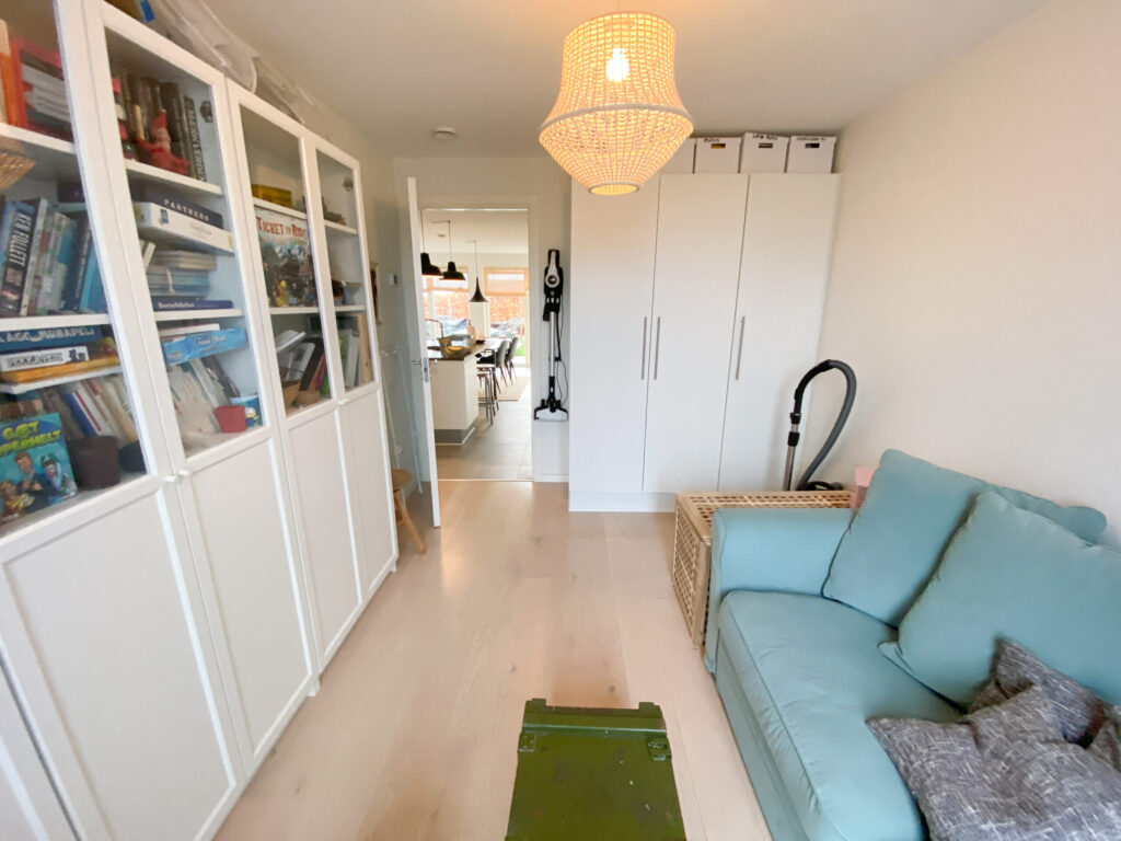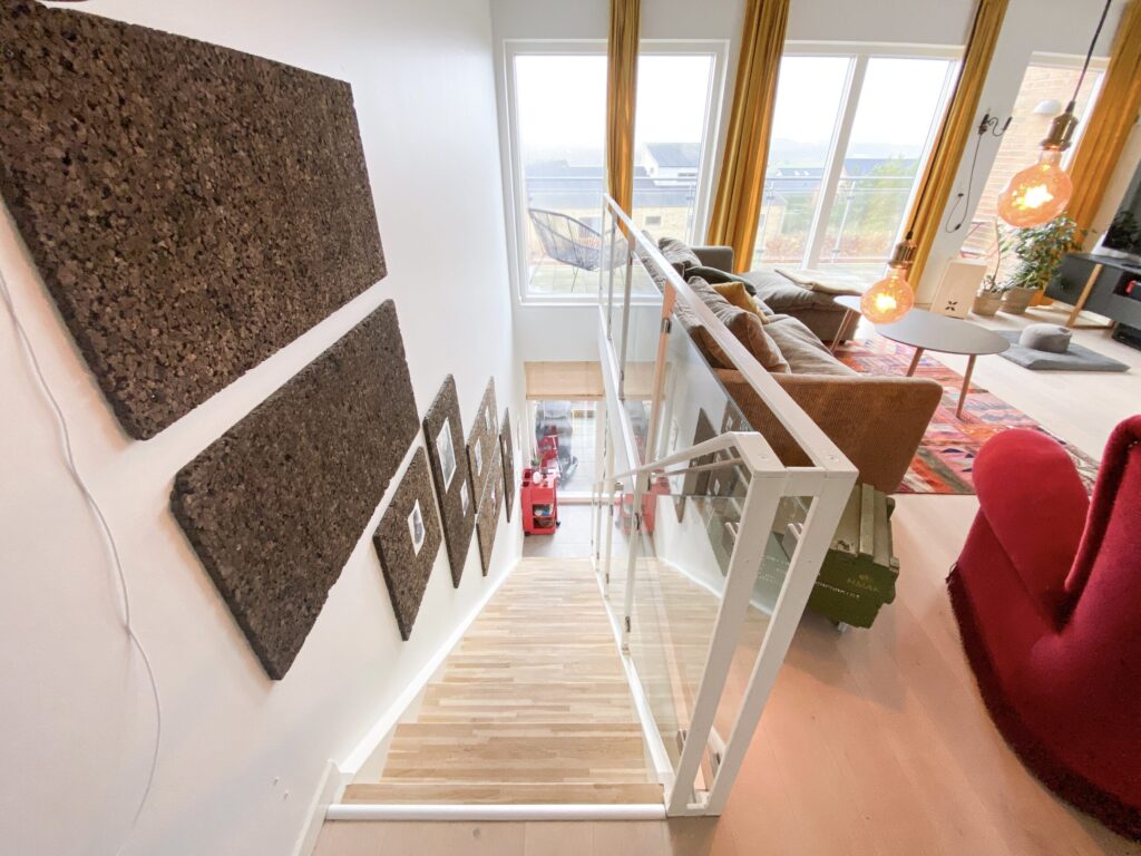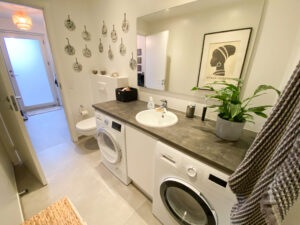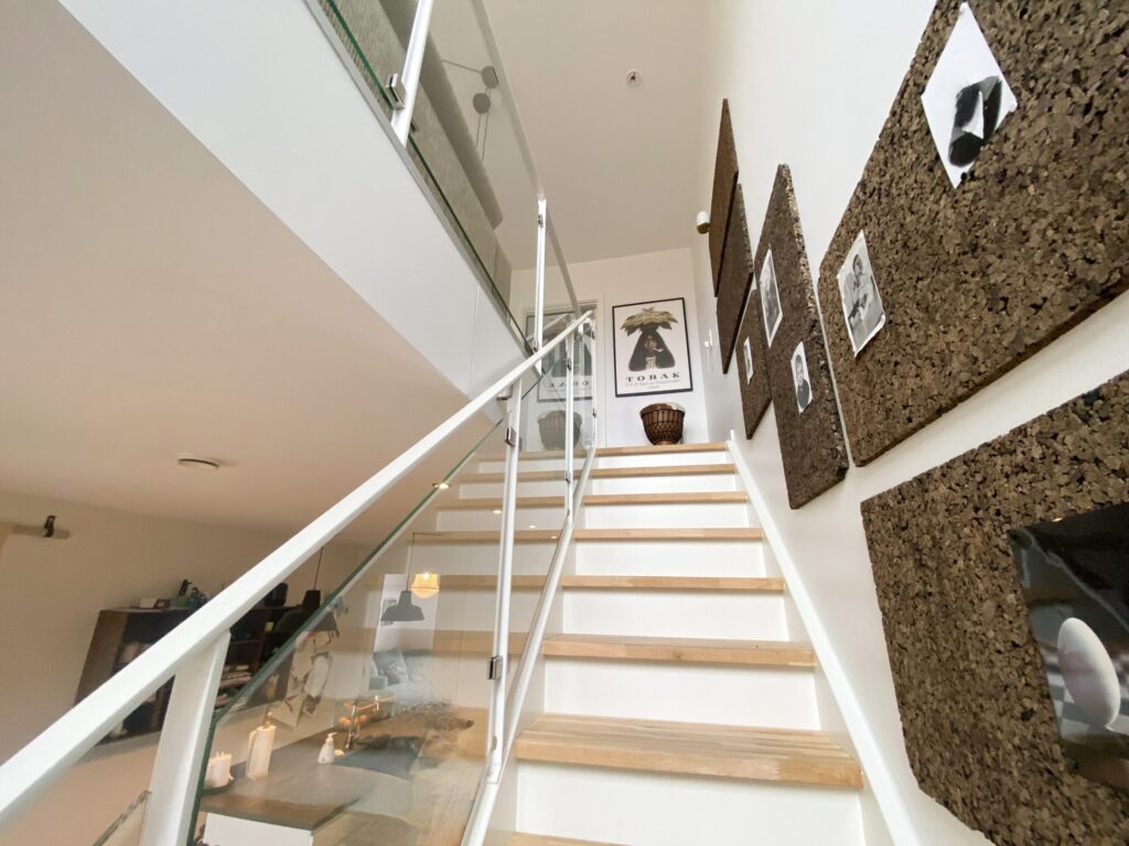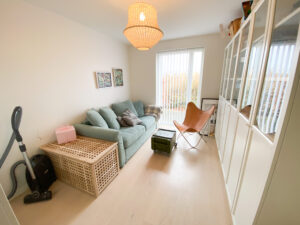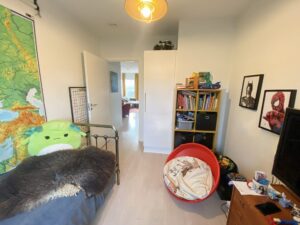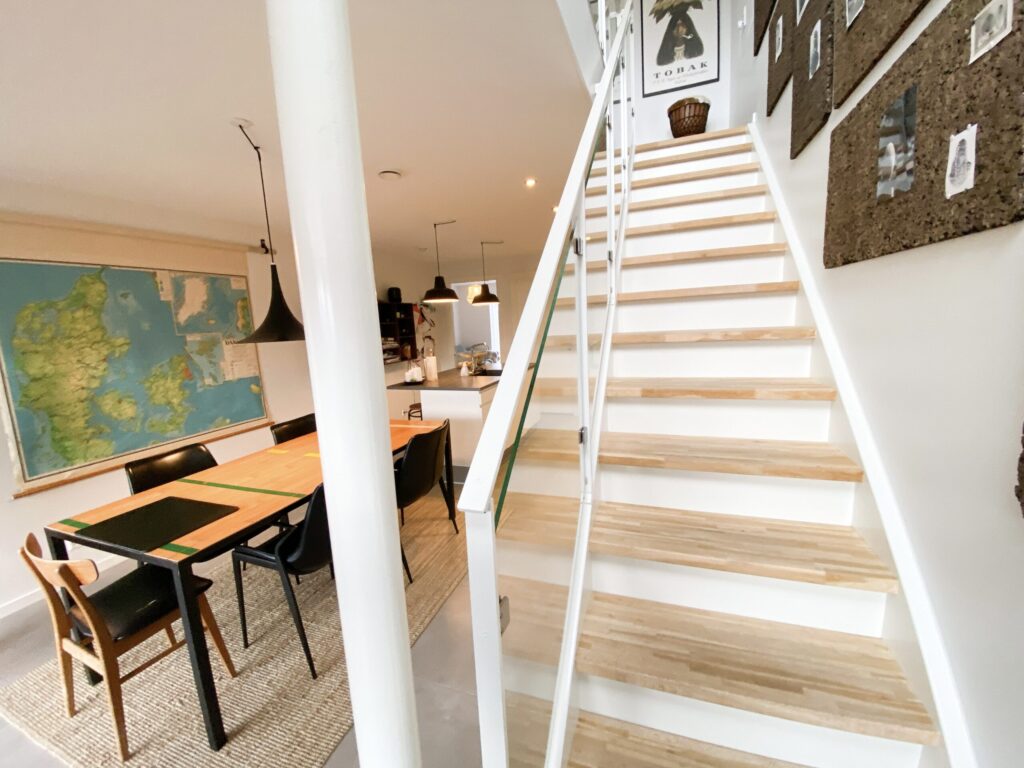 Dette rækkehus er dejligt stort og har alt, hvad man kunne tænke sig. Det er fordelt på 2 plan. Der er både terrasse og altan. Nedenunder har vi en dejlig entre, 2 værelser, køkkenet og et badeværelse. Der er store vinduer, der giver et godt lys. Fra værelserne er der udgang til terrassen. På førstesalen har vi soveværelset, et badeværelse med vaskemaskine og tørretumbler samt et åbent stueområde, hvor der også er store vinduer og udgang til altanen. Der er også et ekstra værelse.