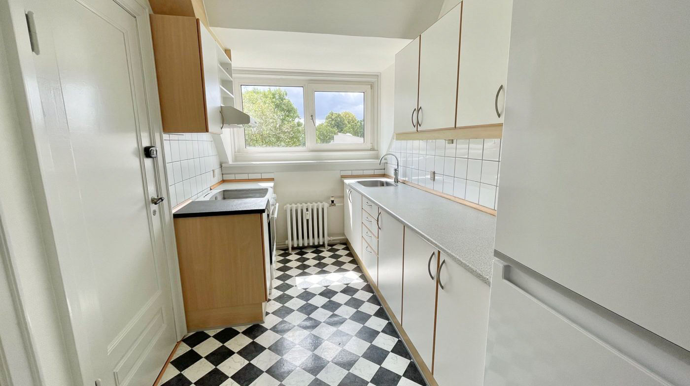 Lejligheden indeholder godt køkken med hvidevarer samt dejligt badeværelse med egen vaskemaskine.