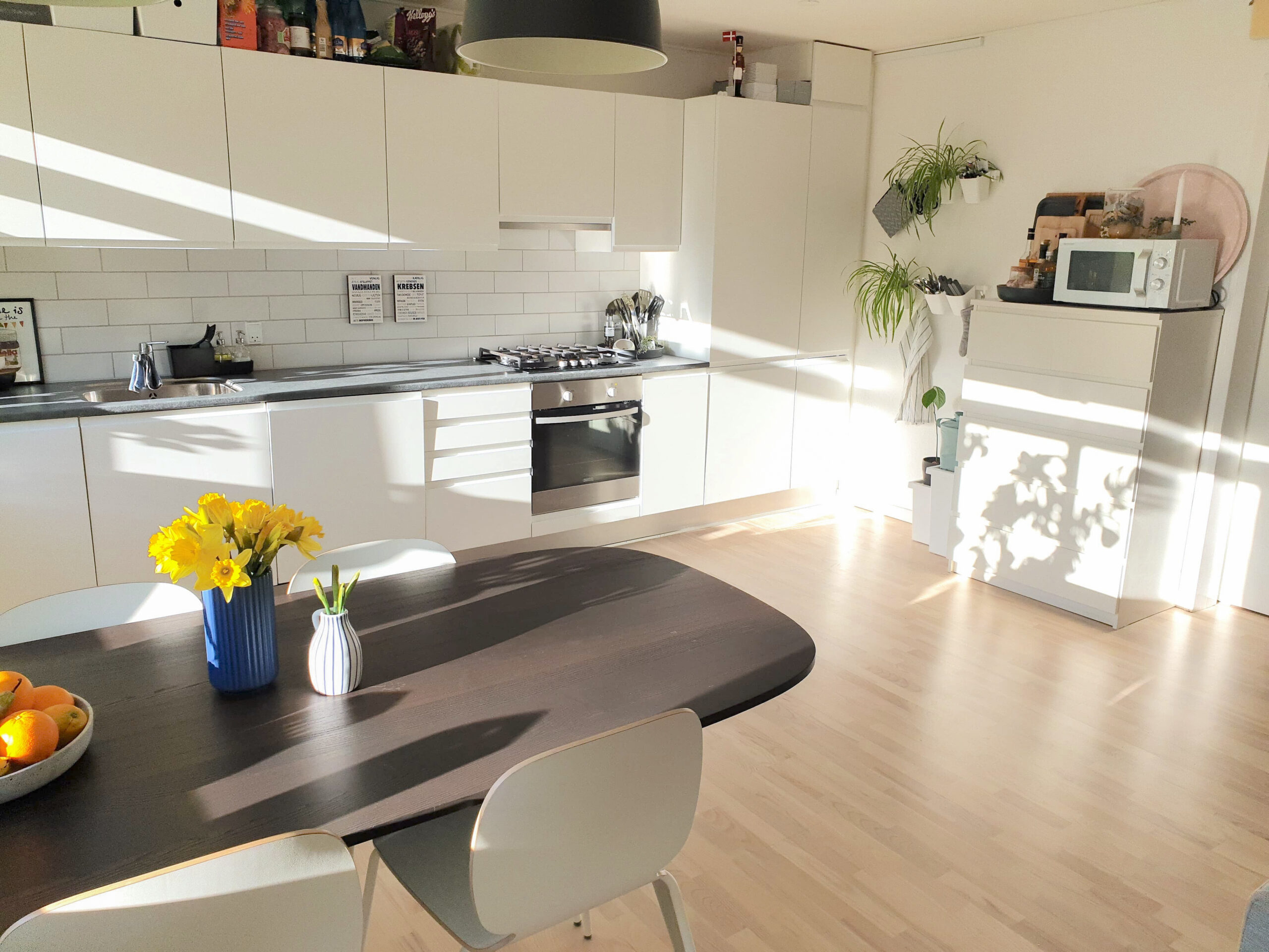 Du bydes velkommen i den rummelige entré, der leder dig ind i lejlighedens hjerte – et stort og åbent køkkenalrum og stue. Dette område udgør et perfekt socialt rum, hvor både madlavning og afslapning kan forenes. Det stilfulde køkken er udstyret med moderne faciliteter og masser af både skabs- og bordplads, mens stuen med sine store vinduer er badet i naturligt lys og udstråler en indbydende atmosfære. Herfra har du også udgang til den lækre altan med udsigt mod haven.