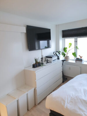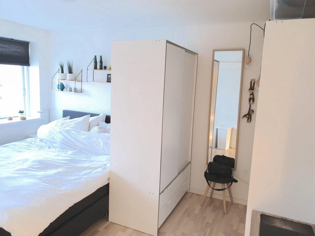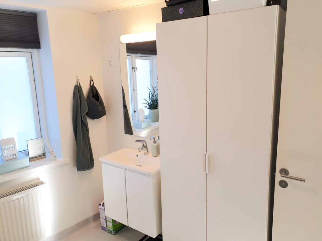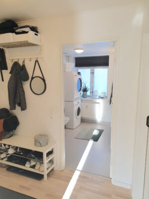Lejligheden rummer yderligere et stort og behageligt soveværelse. Det store badeværelse er funktionelt med både vaskemaskine/tørretumbler og opbevaring.