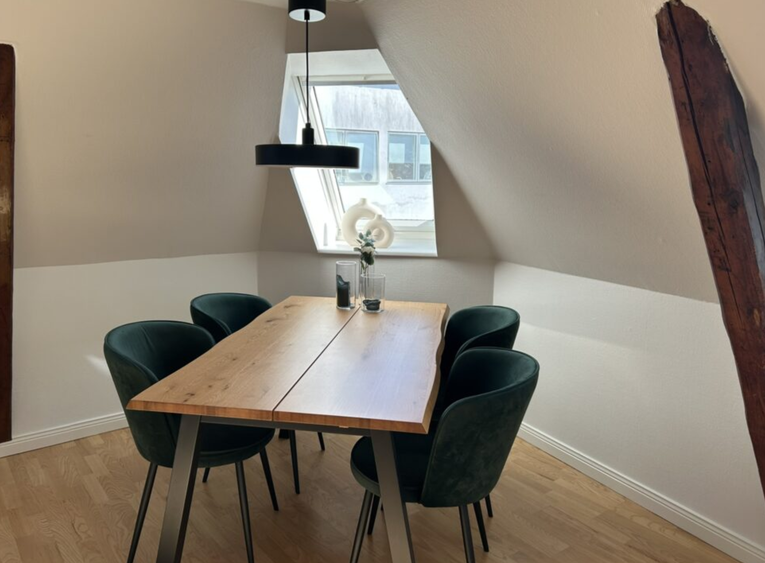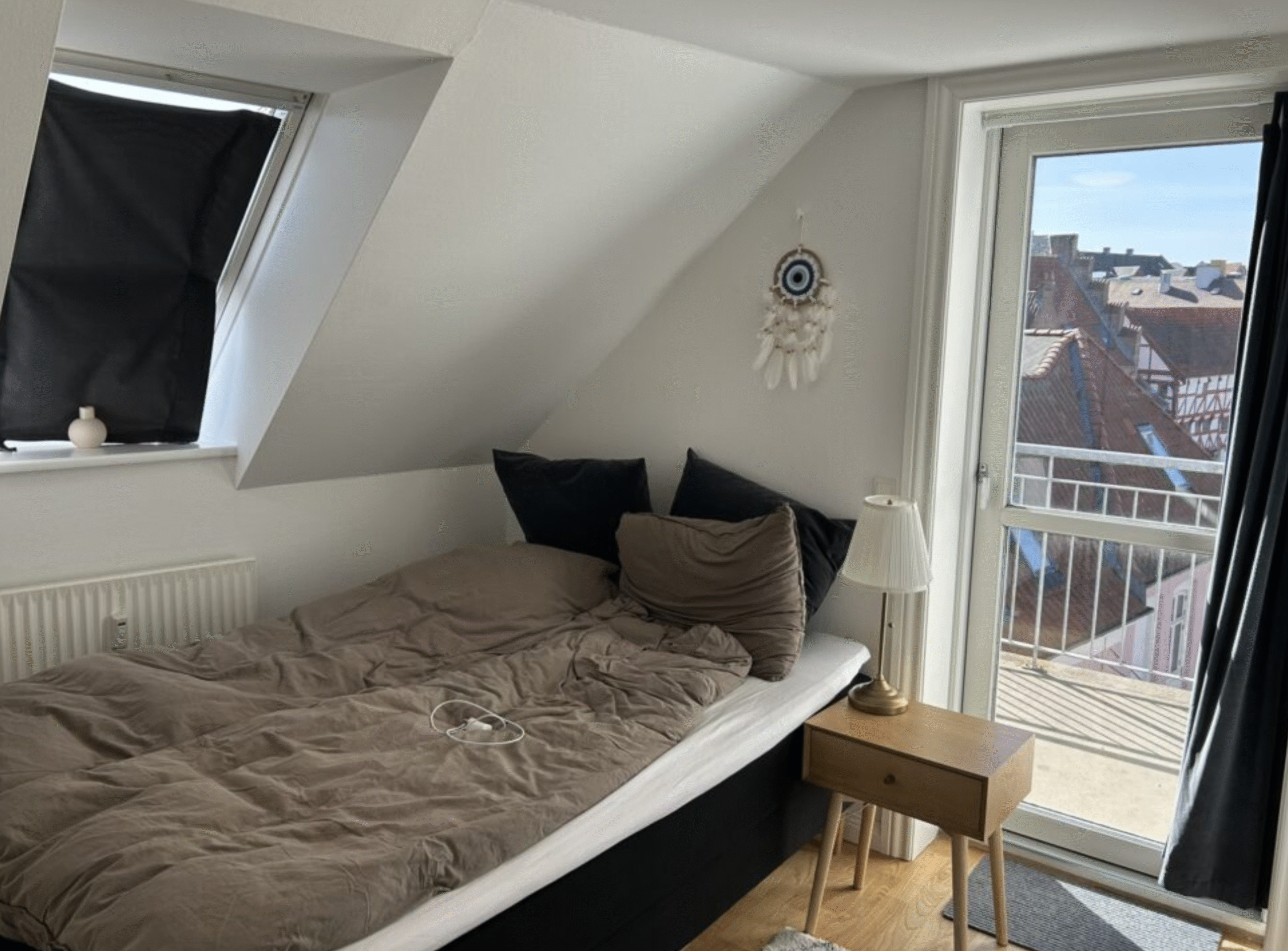 Midt i Aalborgs pulserende centrum finder du denne hyggelige og indbydende taglejlighed, som byder på både charme, atmosfære og en fantastisk beliggenhed.
