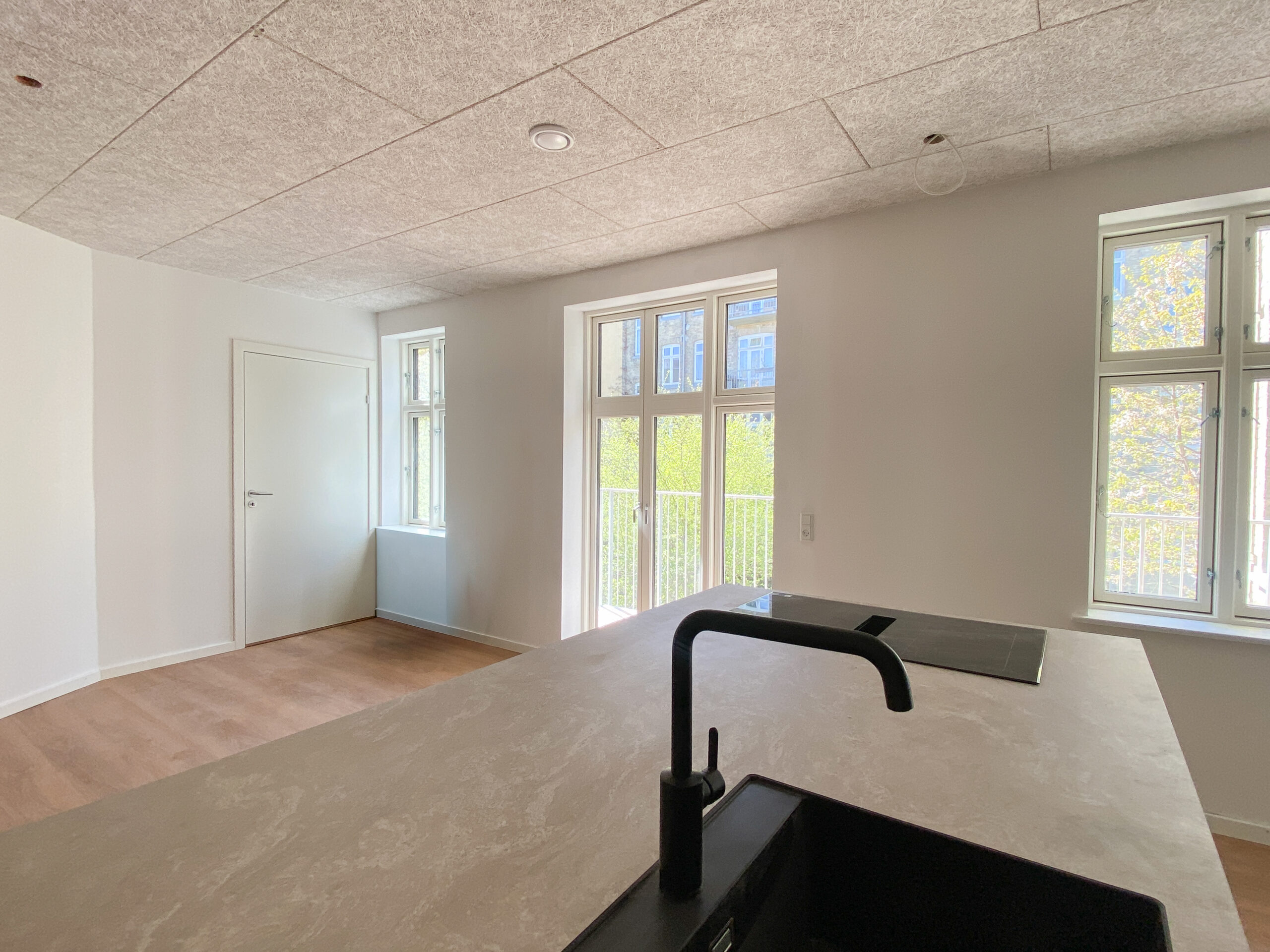 Velkommen til denne indbydende og moderne lejlighed, som er beliggende som den eneste bolig på 1. salen i en ejendom med blot fire lejligheder. Her får du en privat og rolig beliggenhed kombineret med helt nyrenoverede rammer fra maj 2026.