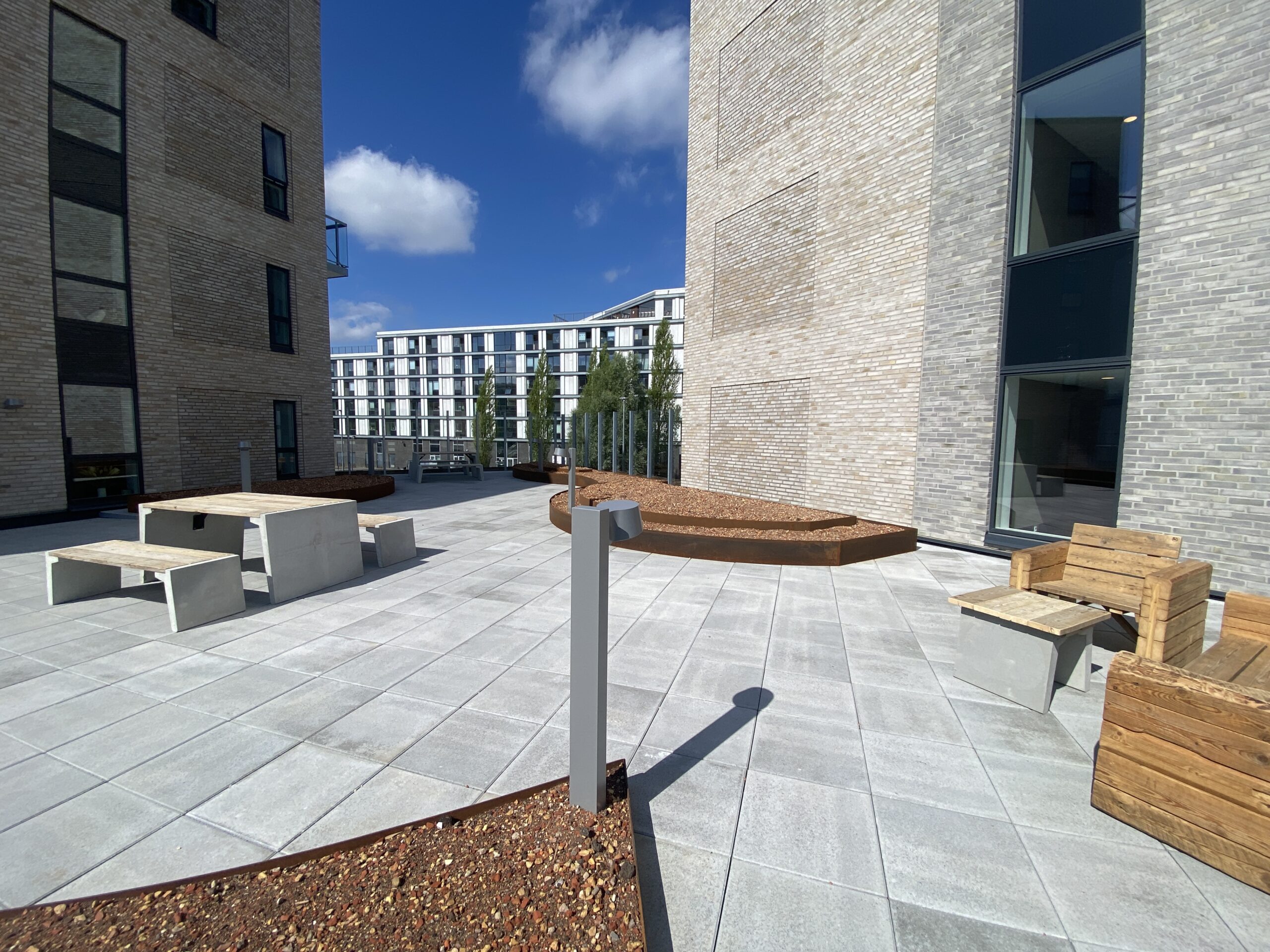 Alle lejere har adgang til en stor fælles tagterrasse med en skøn udsigt over Aalborg by.