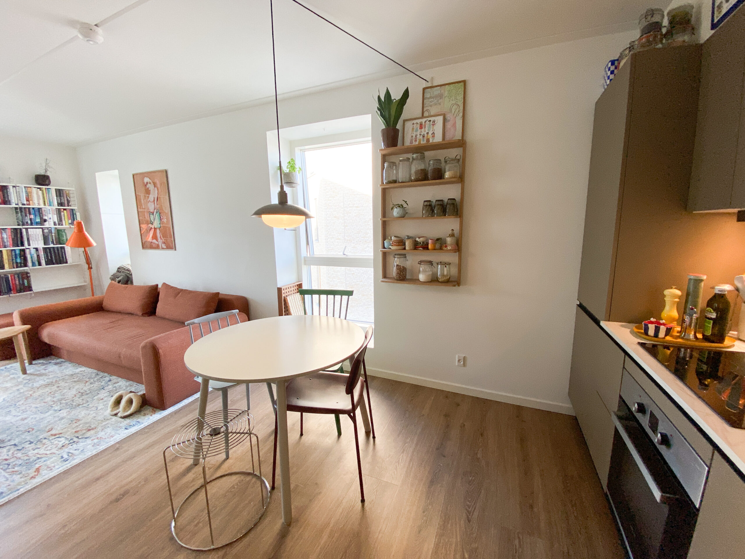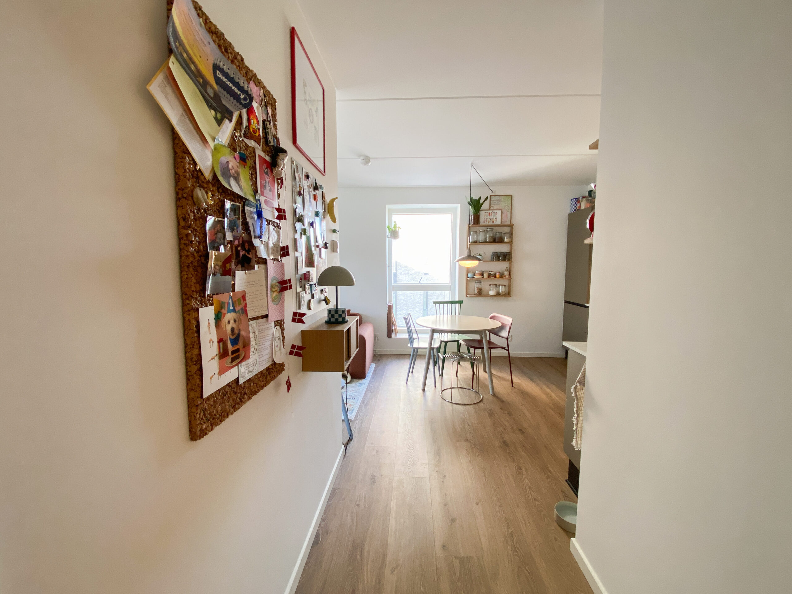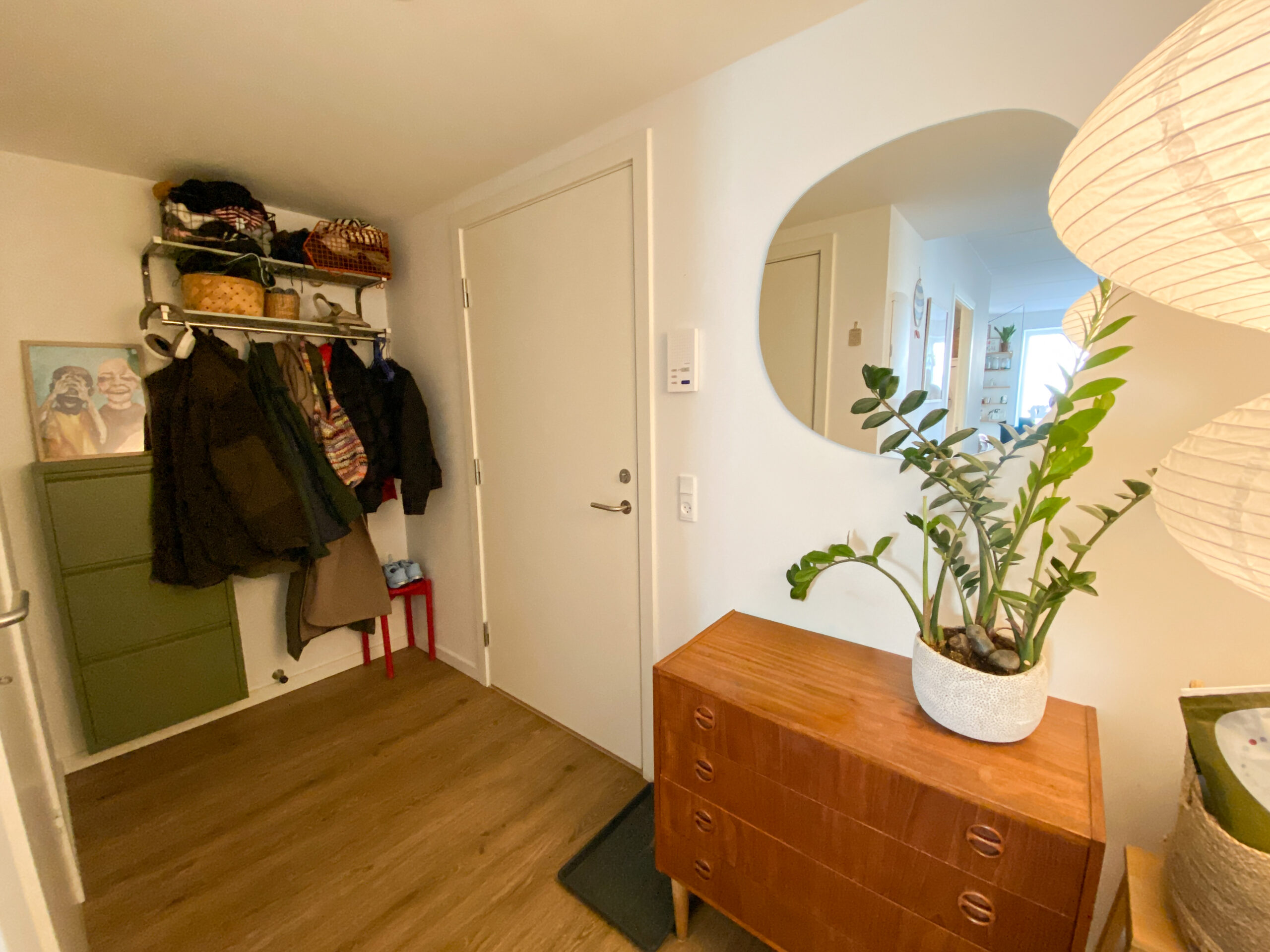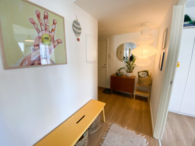 Denne lejlighed er kendetegnet ved flotte, lyse trægulve, der tilføjer en varm atmosfære og skaber en fornemmelse af sammenhæng mellem rummene.