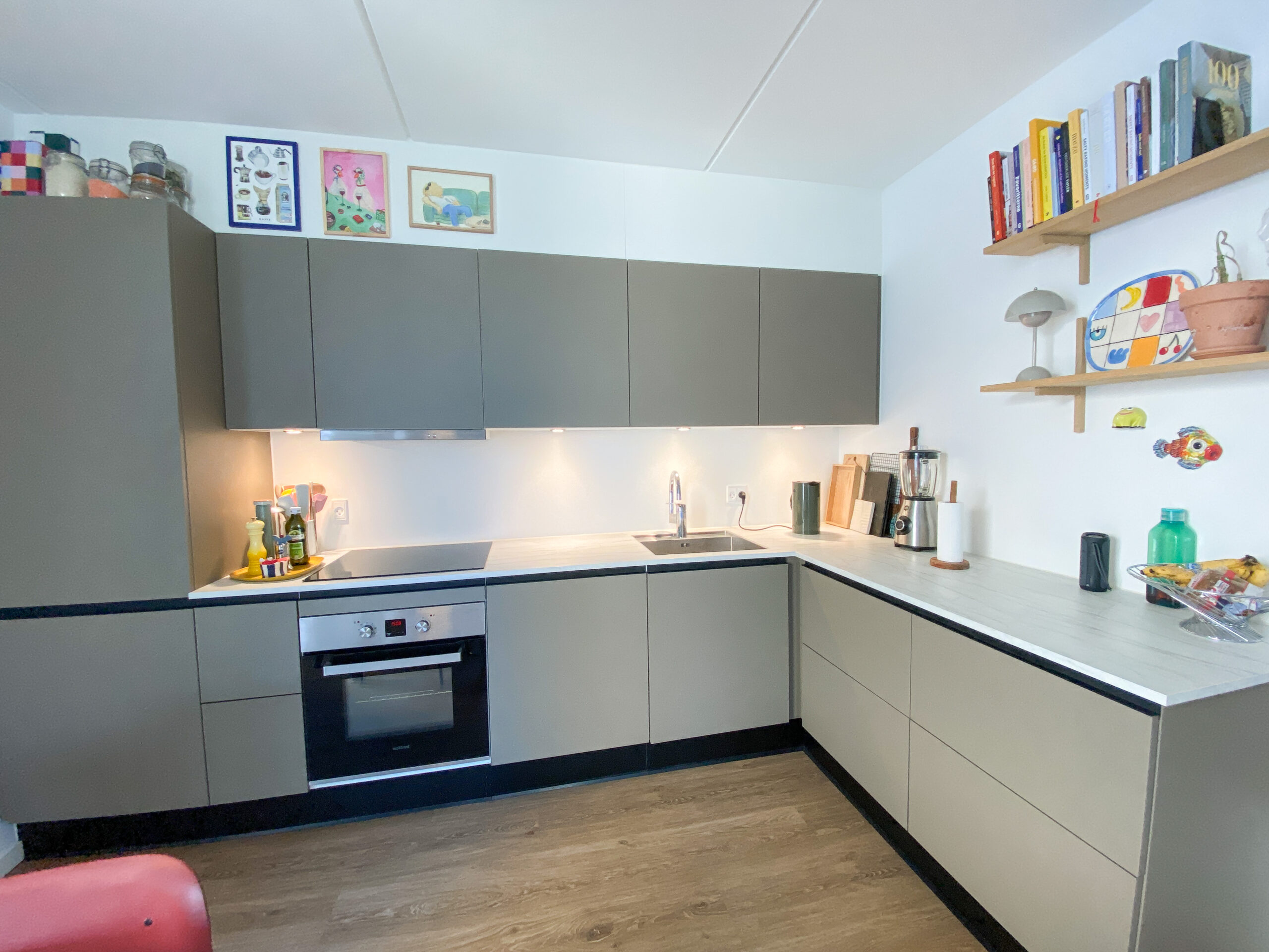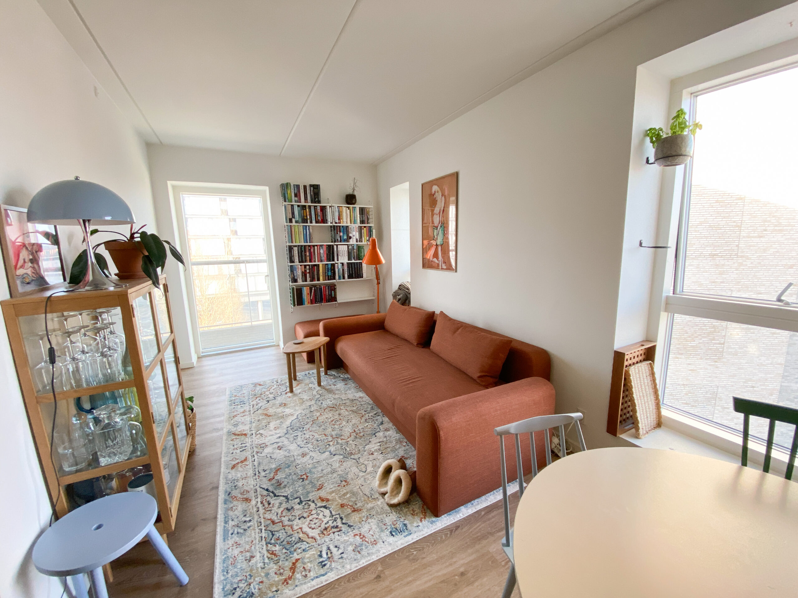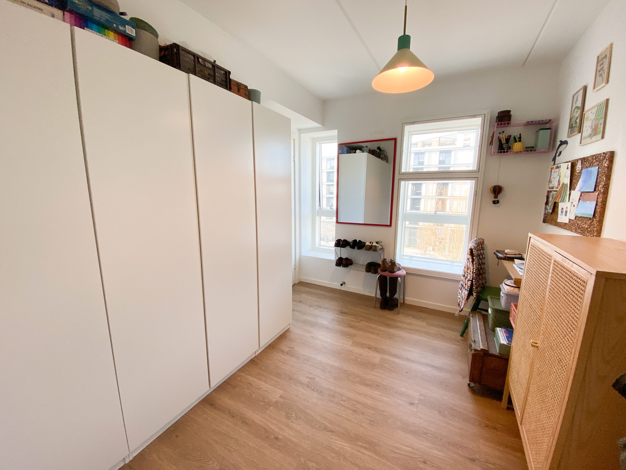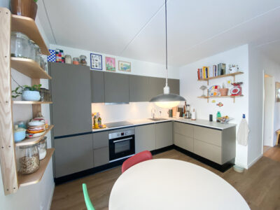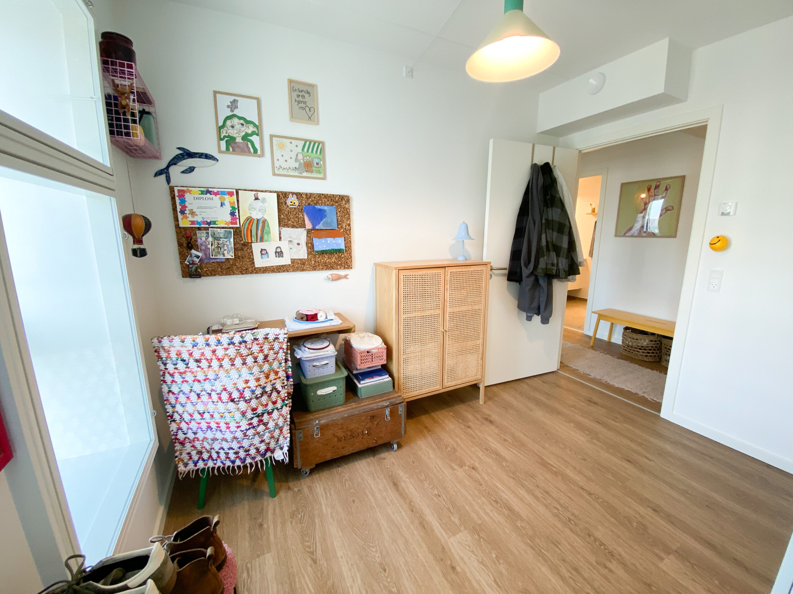 Denne lejlighed er kendetegnet ved flotte, lyse trægulve, der tilføjer en varm atmosfære og skaber en fornemmelse af sammenhæng mellem rummene.