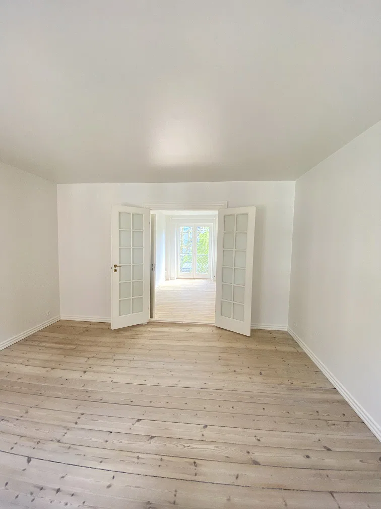 Lejligheden byder på 102 m2, der er perfekt udnyttet med lyse opholdsrum og klassiske detaljer. Entréen åbner op til stuen, som prydes af flotte plankegulve og franske døre, der fører til et ekstra rum, som kan anvendes til kontor, soveværelse eller spiseafdeling. Herfra er der udgang til en fransk altan med udsigt til det grønne gårdmiljø. Det separate køkken er stilrent indrettet med hvide, grebsfrie elementer og alle nødvendige hårde hvidevarer, herunder opvaskemaskine og kombineret vaskemaskine/tørretumbler. Badeværelset er moderne med bruseniche og naturligt lys fra vinduet.