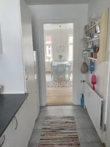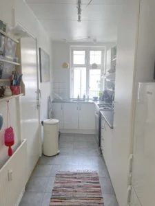 Når du træder ind i denne fine lejlighed, mødes du af en indbydende entré og gennemgående pæne gulve, der leder dig videre til de forskellige rum, herunder et moderne badeværelse med seperat brus, og et køkken der fremstår med flotte faciliteter og er det perfekte sted for kulinariske udfoldelser.