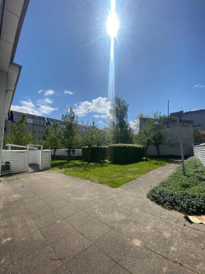 Til lejligheden hører også adgang til et fantastisk gårdanlæg, der tilfører et strejf af natur og ro midt i byens hjerte. Dette hyggelige udendørsområde er det perfekte sted at slappe af og nyde det gode vejr.