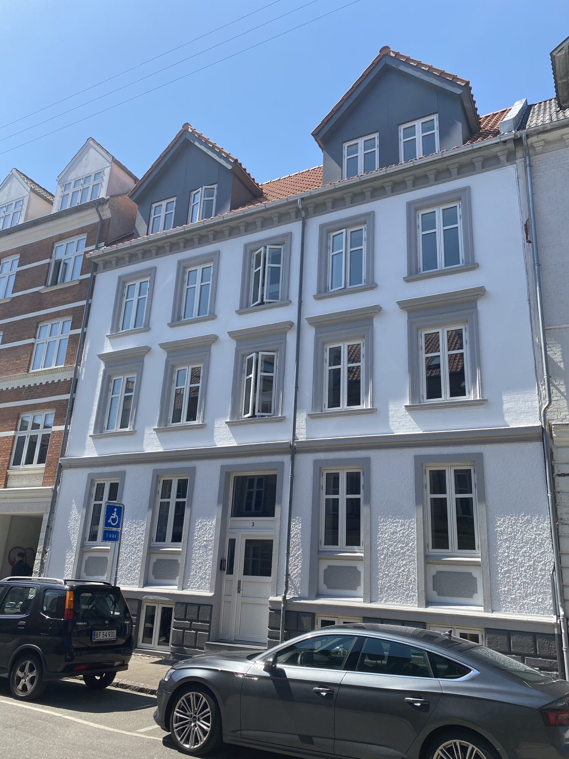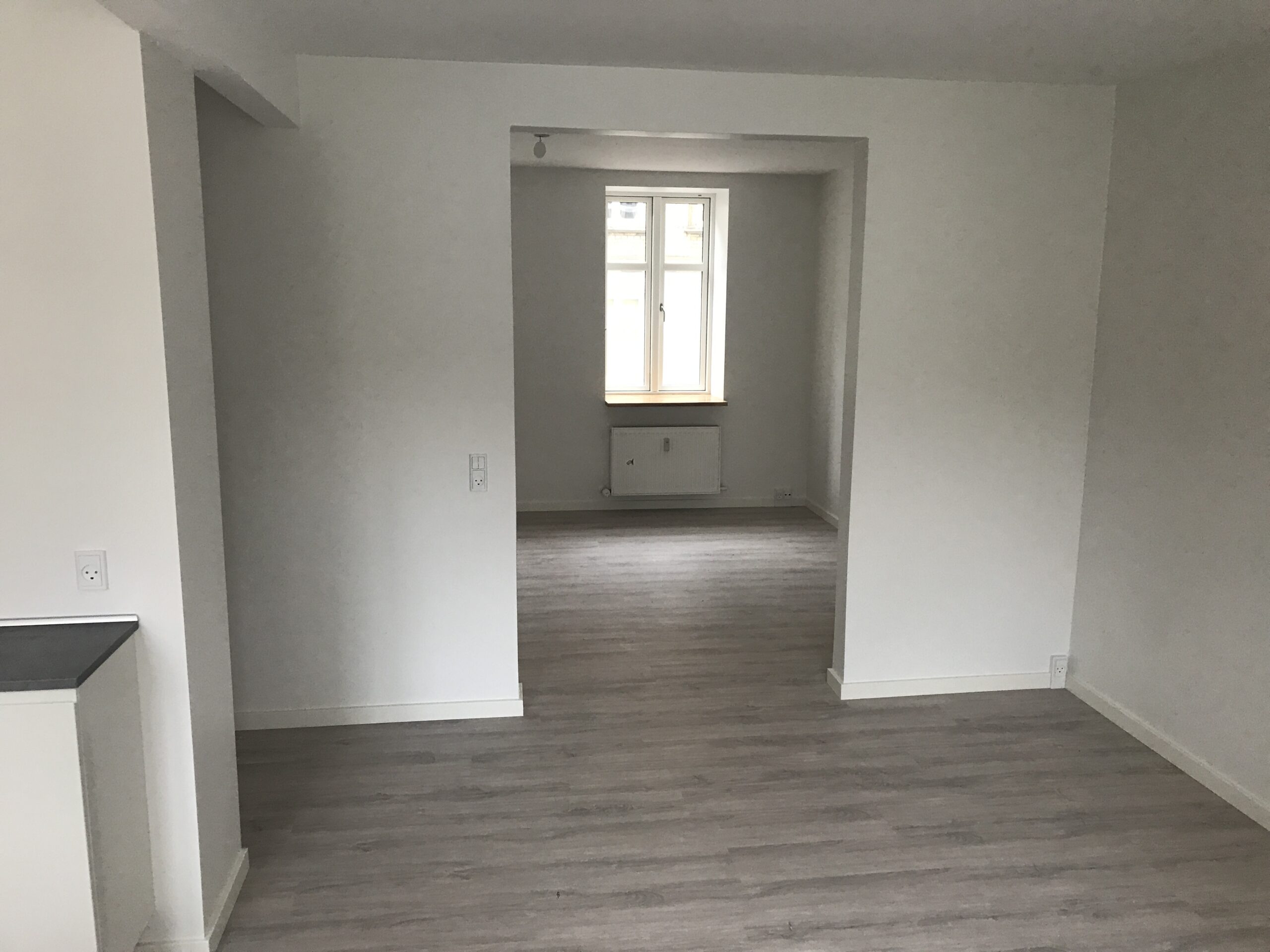 English: This wonderful 99 m² apartment is located in the very heart of Aalborg, completely renovated and equipped with brand new appliances. Large kitchen/living room and two separate bed rooms. Amazing balcony towards the quiet backyard and laundry room in the basement. Perfect for a couple or a couple of friends. No pets allowed.