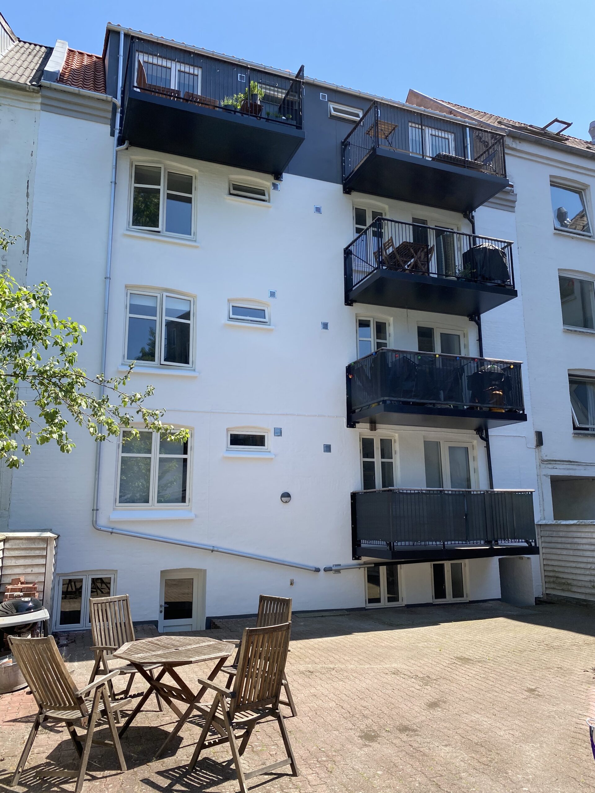 Ny, stor syd-vestvendt altan mod gården. God vaskekælder i ejendommen. Aflåst cykelparkering og depotrum.