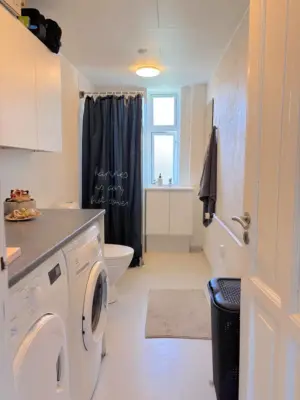 Når du træder ind i lejlighedens indbydende stue, bliver du mødt af et lyst og rummeligt rum med store vinduer, der sikrer et dejligt lysindfald. De åbne linjer indbyder til hyggelige stunder med familie og venner. Det renoverede køkken er en drøm for enhver madentusiast med opvaskemaskine, samt masser af bord- og skabsplads. Lejligheden byder på to yderligere værelser, der kan benyttes som soveværelser, kontor eller gæsteværelse, der tilmed gør boligen ideel som delelejlighed. Det store badeværelse byder på både vaskemaskine og tørretumbler, der gør hverdagen nemmere.