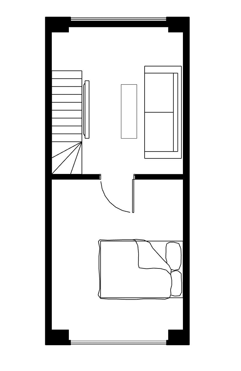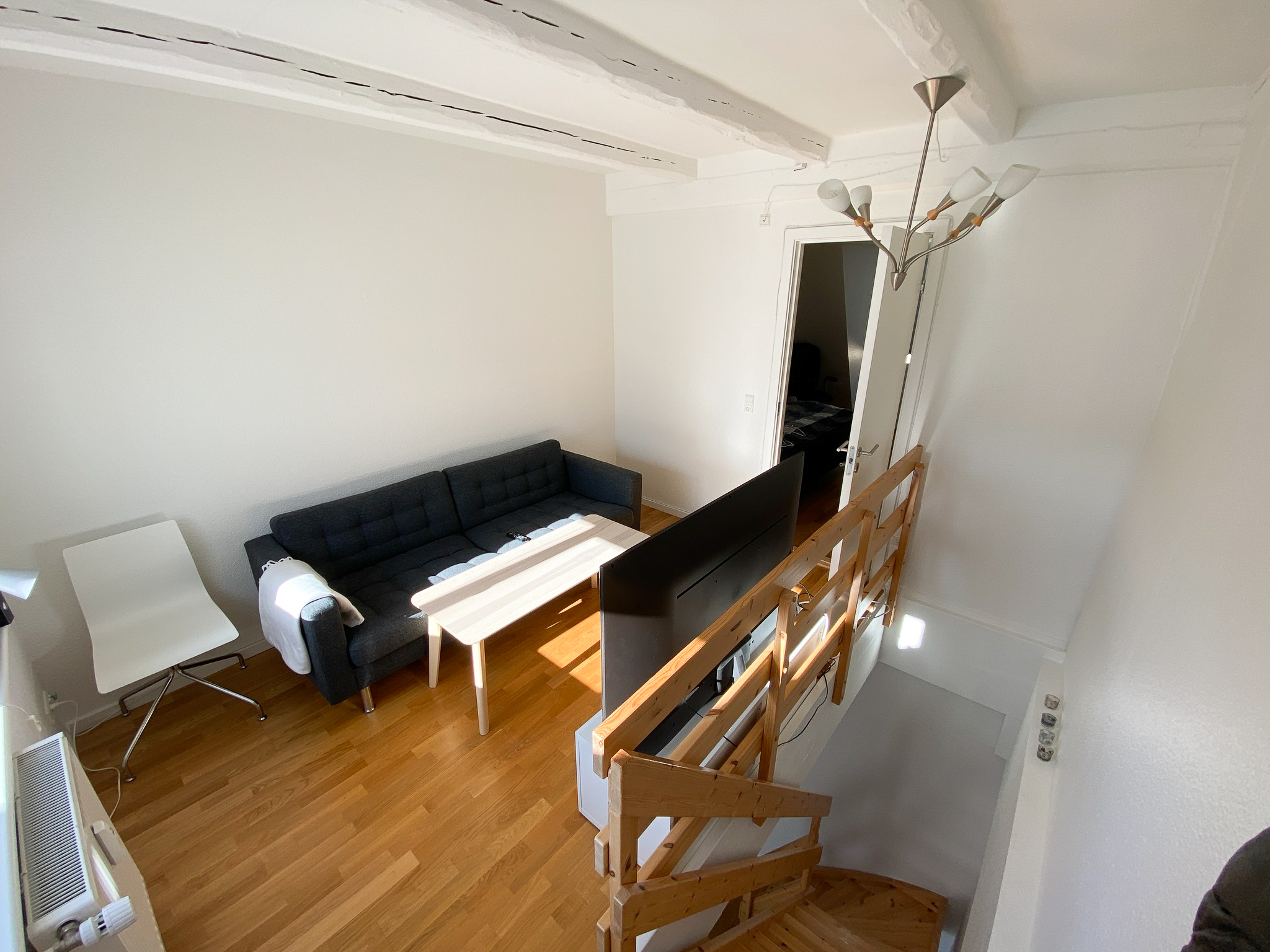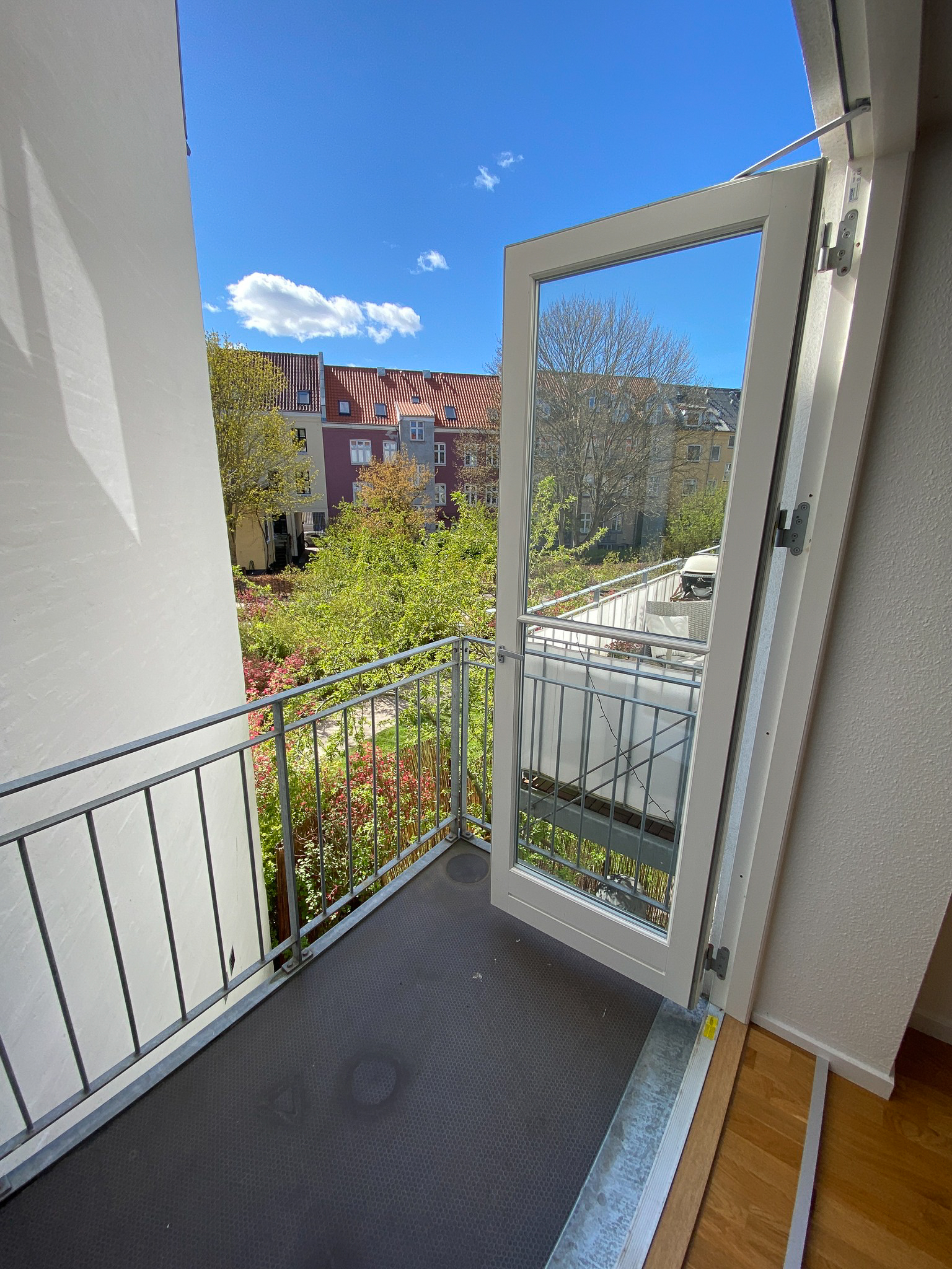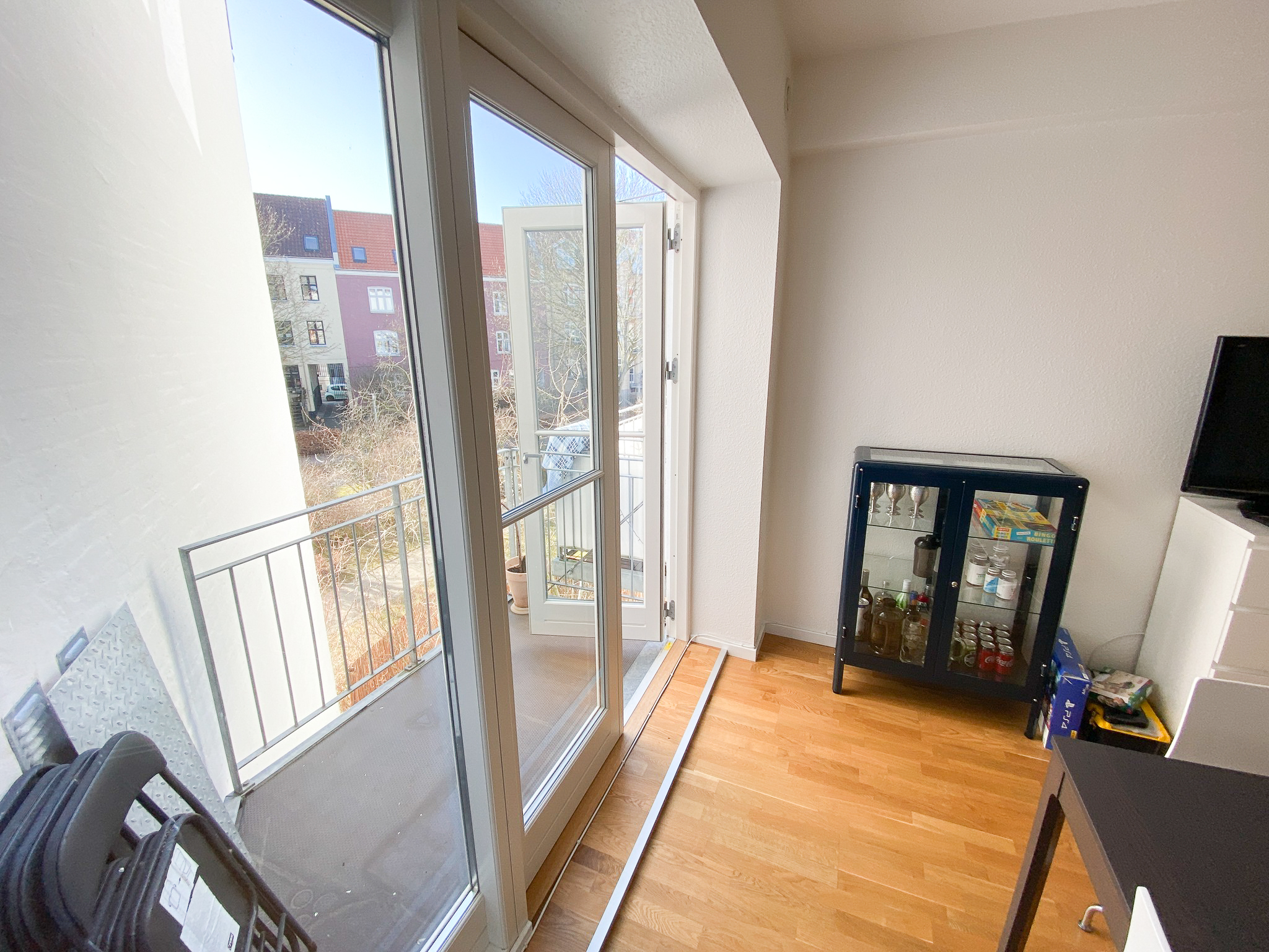 Op ad trappen kommer du til 1. sal, hvor du finder en rummelig stue og et dejligt soveværelse med fransk altan, der giver ekstra lys og luft.