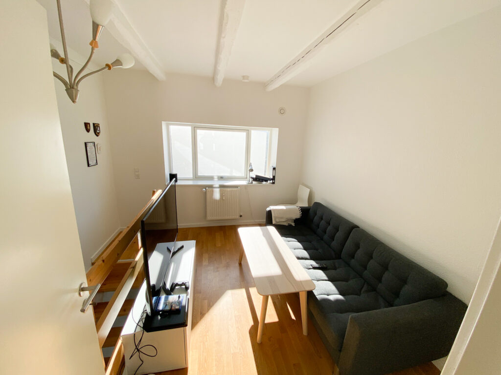 Denne lækre, istandsatte 3-værelses lejlighed fordelt over 2 etager byder på en perfekt kombination af moderne komfort og rolige omgivelser. I stueetagen mødes du af et lyst og åbent køkkenalrum, hvor det store vinduesparti giver masser af naturligt lys. Køkkenet er udstyret med opvaskemaskine og fremstår både funktionelt og stilfuldt.