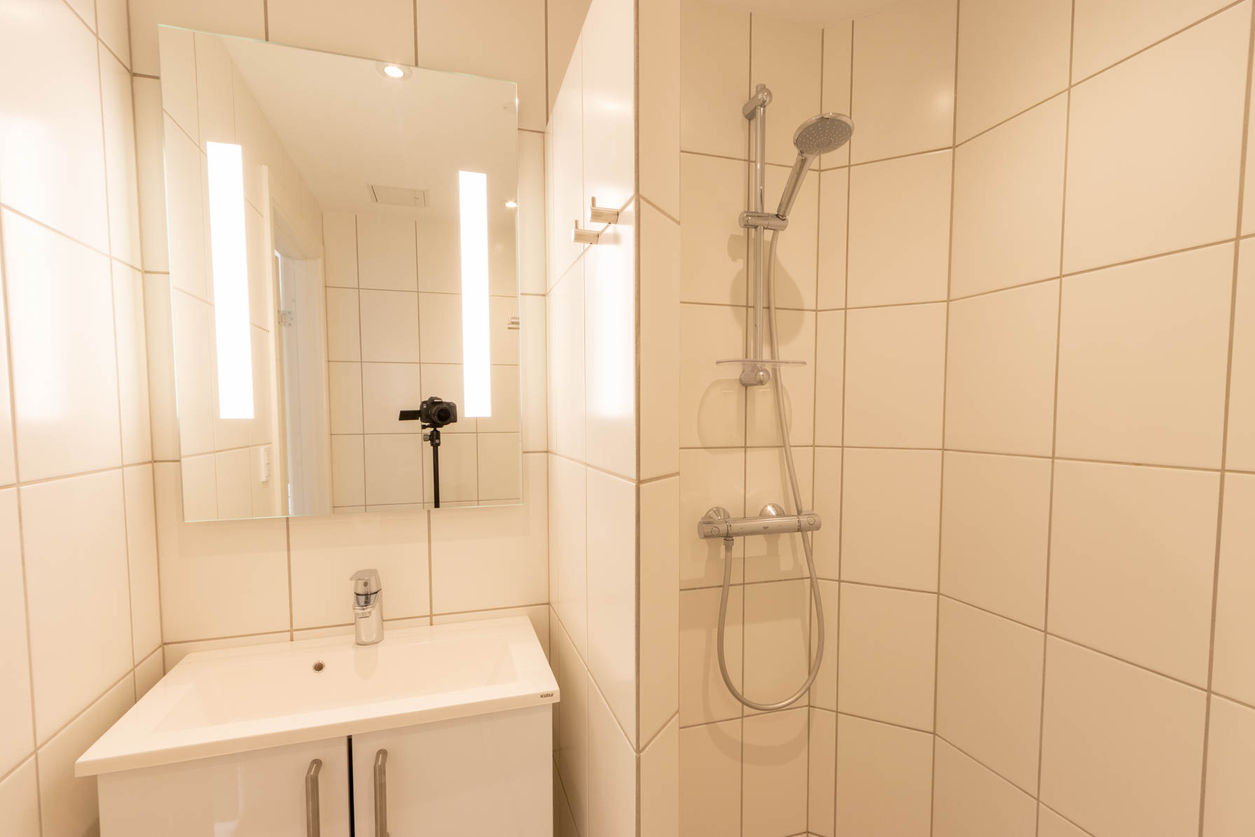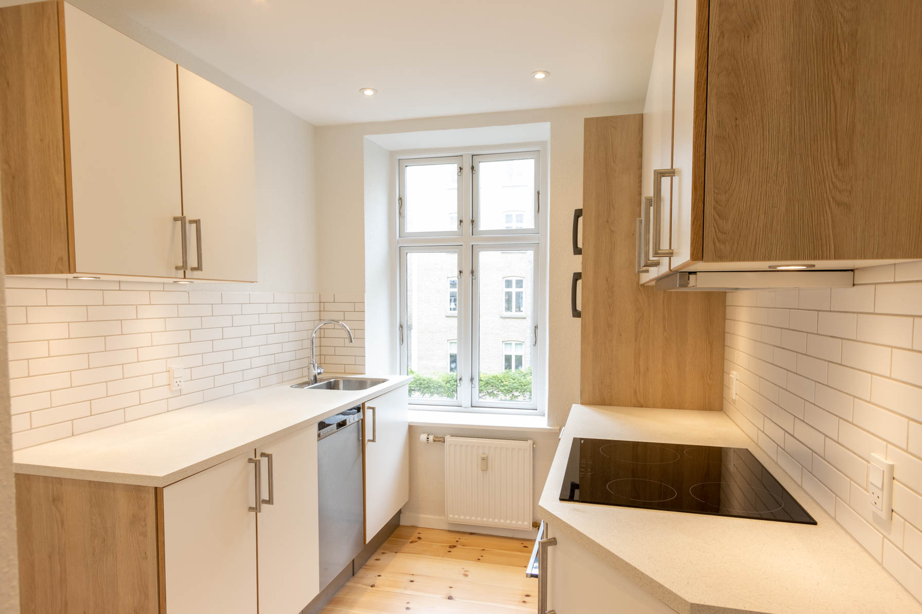 Køkkenet er praktisk indrettet med gode arbejdsflader, og her er plads til at kreere lækre måltider. Badeværelset er funktionelt og indbydende, hvilket gør hverdagen mere bekvem. Lejligheden fremstår velholdt og nymalet, hvilket giver en frisk og moderne følelse.