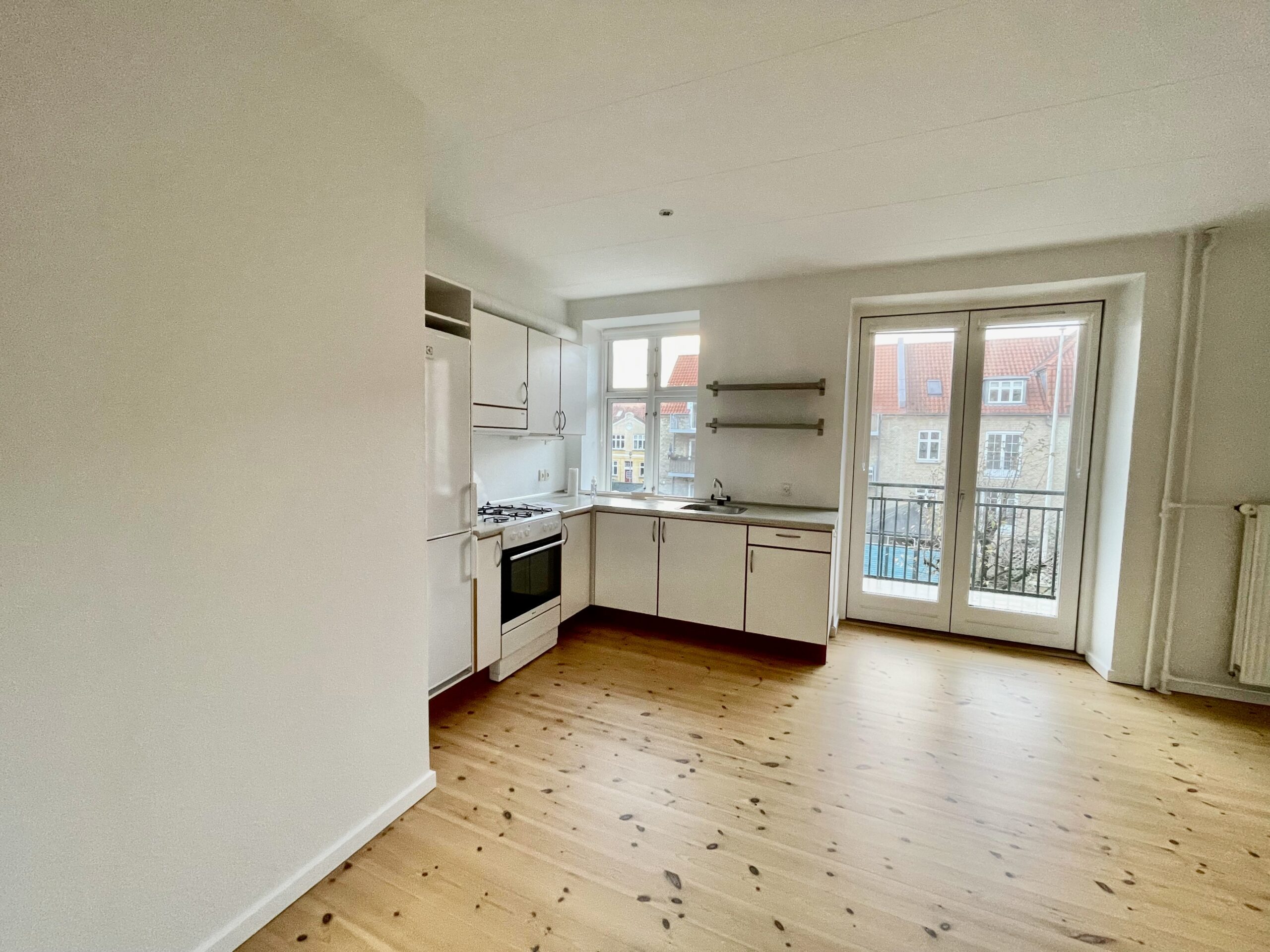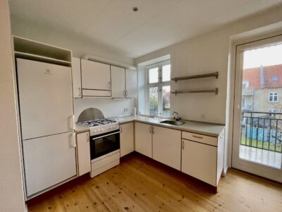 Lejligheden er bestående af et køkken-alrum med udgang til altan. Køkkenet er nyere og har god bordplads.