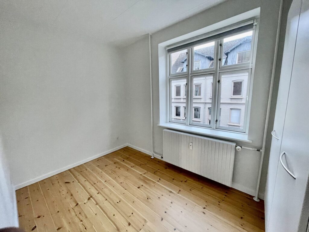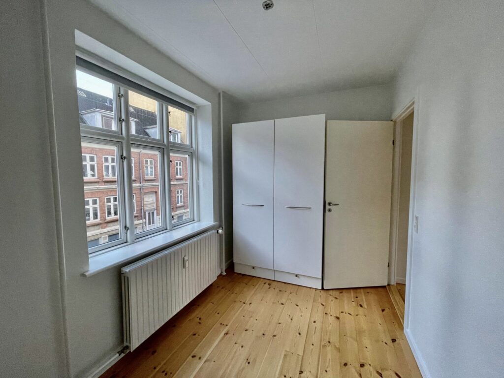 Til sidst er der soveværelset, som rummer en seng, og noget skabsplads.