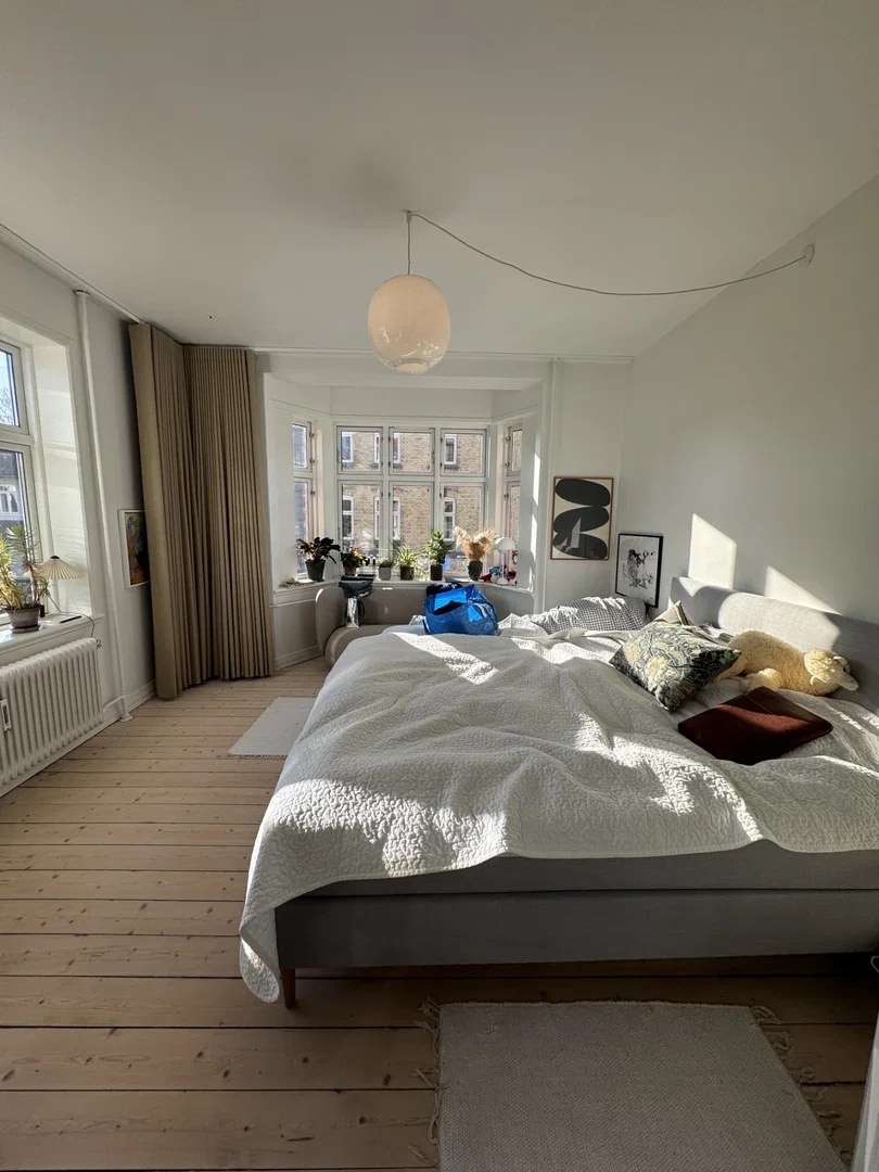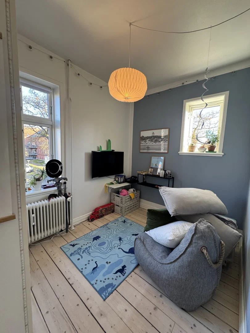 Lejligheden byder på lyse plankegulve og store vinduespartier, der skaber en rolig, nordisk stemning. Med fire gode rum er der plads til både stue, soveværelser og eventuelt hjemmekontor, hvilket gør den ideel til parret, den lille familie eller som delelejlighed. Entréen byder på en rummelig fordelingsgang med indbyggede skabe og et behageligt lysindfald. I opholdszonen får du et lyst rum med fin plads til sofaarrangement og spiseplads. Køkkenet er funktionelt indrettet med hvide elementer, god bord- og skabsplads samt opvaskemaskine, og der er plads til en lille spiseplads til morgenkaffen. Badeværelset rummer en separat bruseniche og en vaskesøjle med vaskemaskine og tørretumbler, hvilket er praktisk i en travl hverdag.
