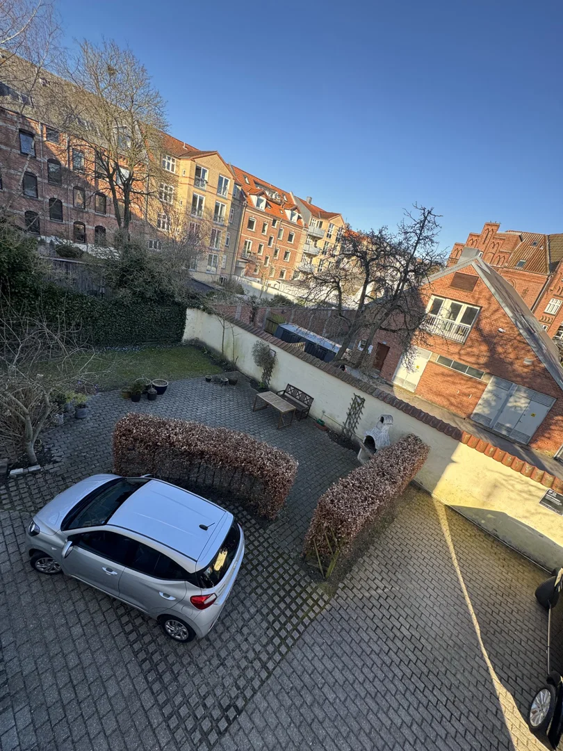 Udenfor kan du se frem til en velholdt, lukket gård med parkeringsmulighed ved ejendommen – en sjælden bonus i hverdagen. Husdyr er tilladt efter nærmere aftale, og den fleksible ruminddeling gør boligen velegnet til deling.