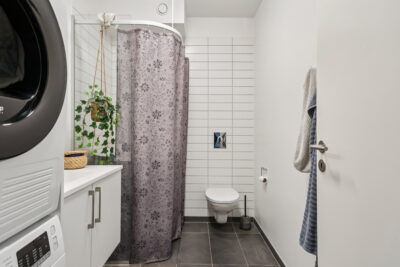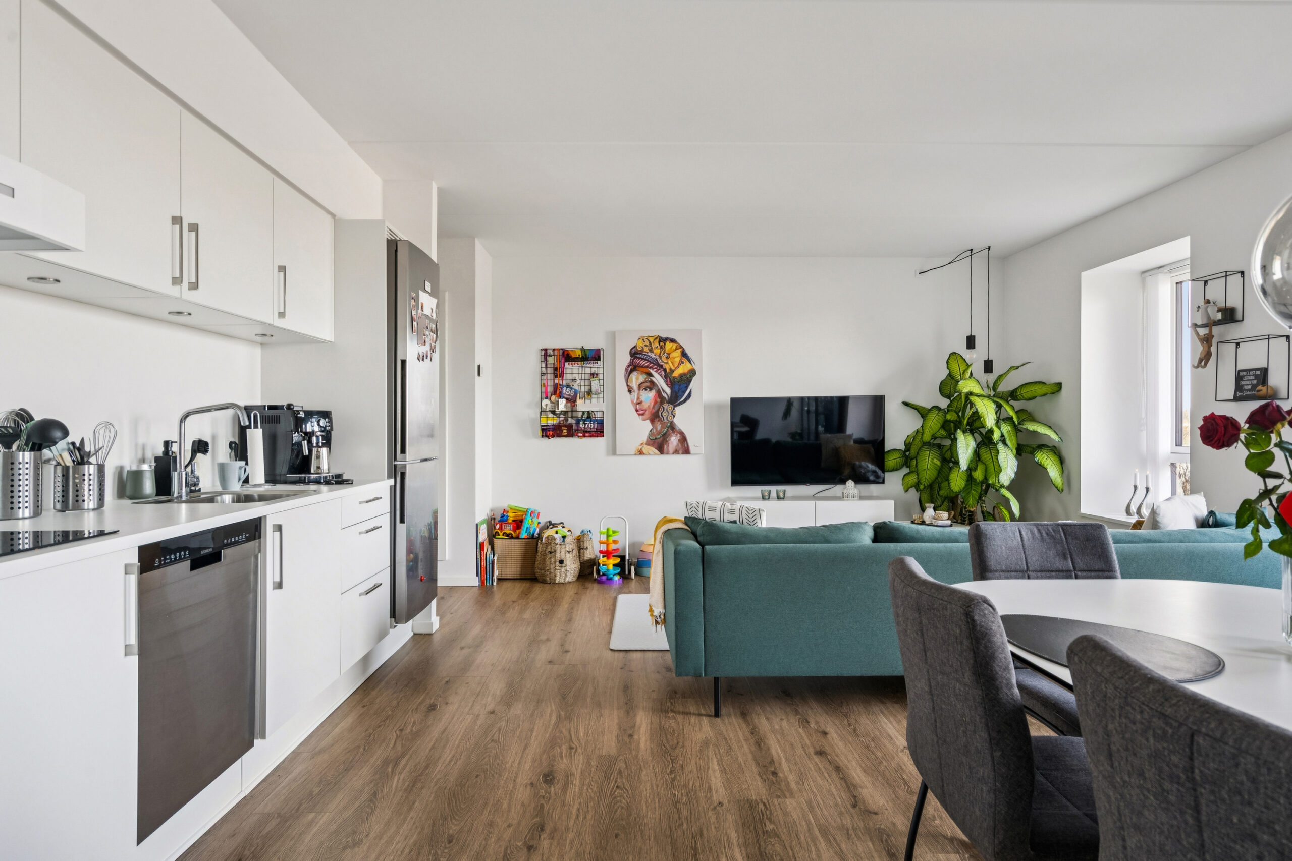 Lejligheden er udstyret med et moderne Svanekøkken, der fremstår nyt og stilrent. Alle rum er præget af moderne design med gulvvarme og vedligeholdelsesfri gulve, der sikrer et behageligt og praktisk hjem.