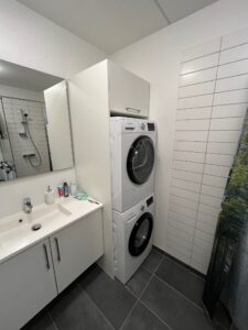 Der mulighed for at installere vaskemaskine og tørretumbler på badeværelset.