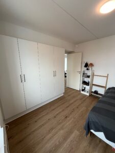 Fra stuen har du adgang til soveværelset, der er udstyret med masser af skabsplads.