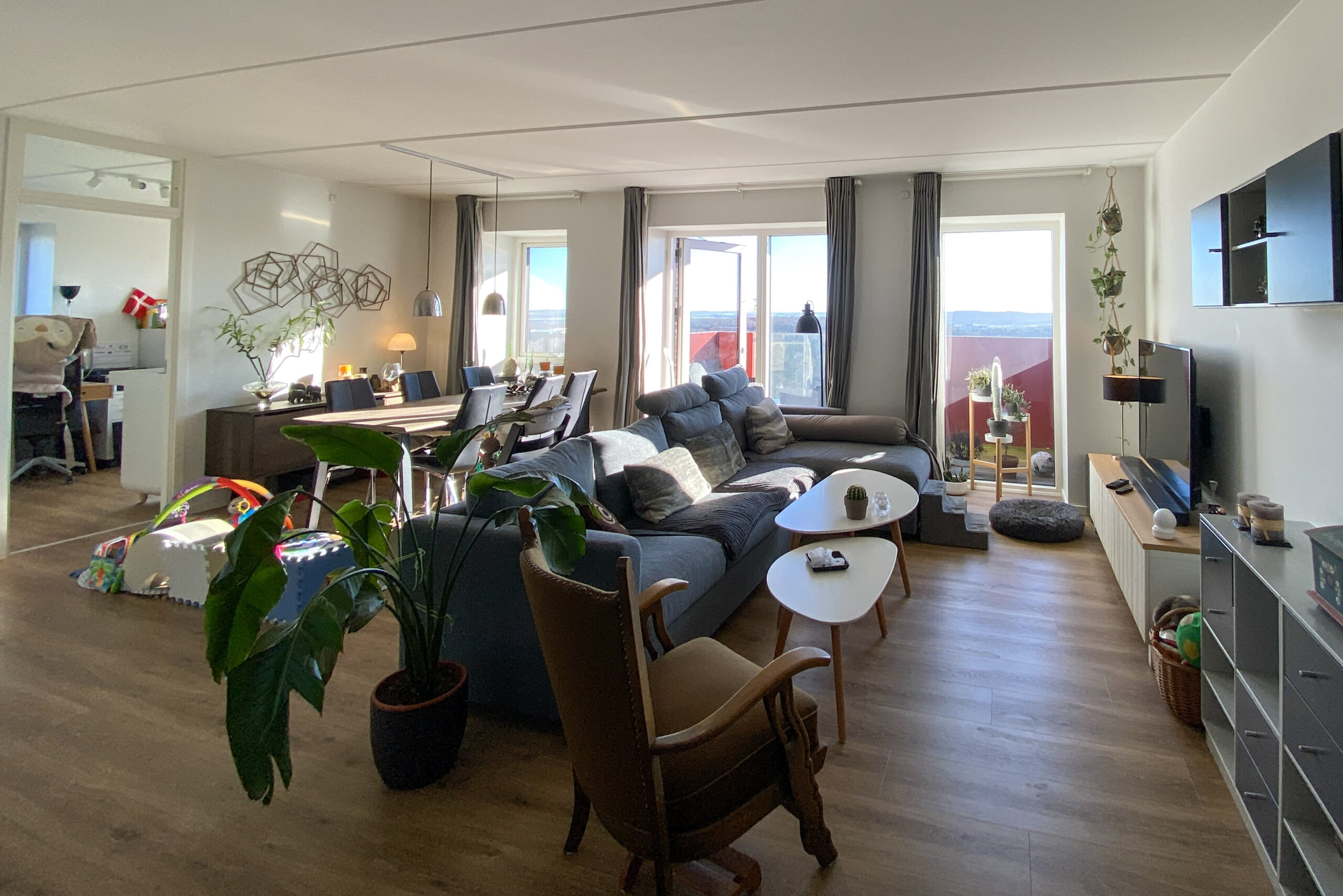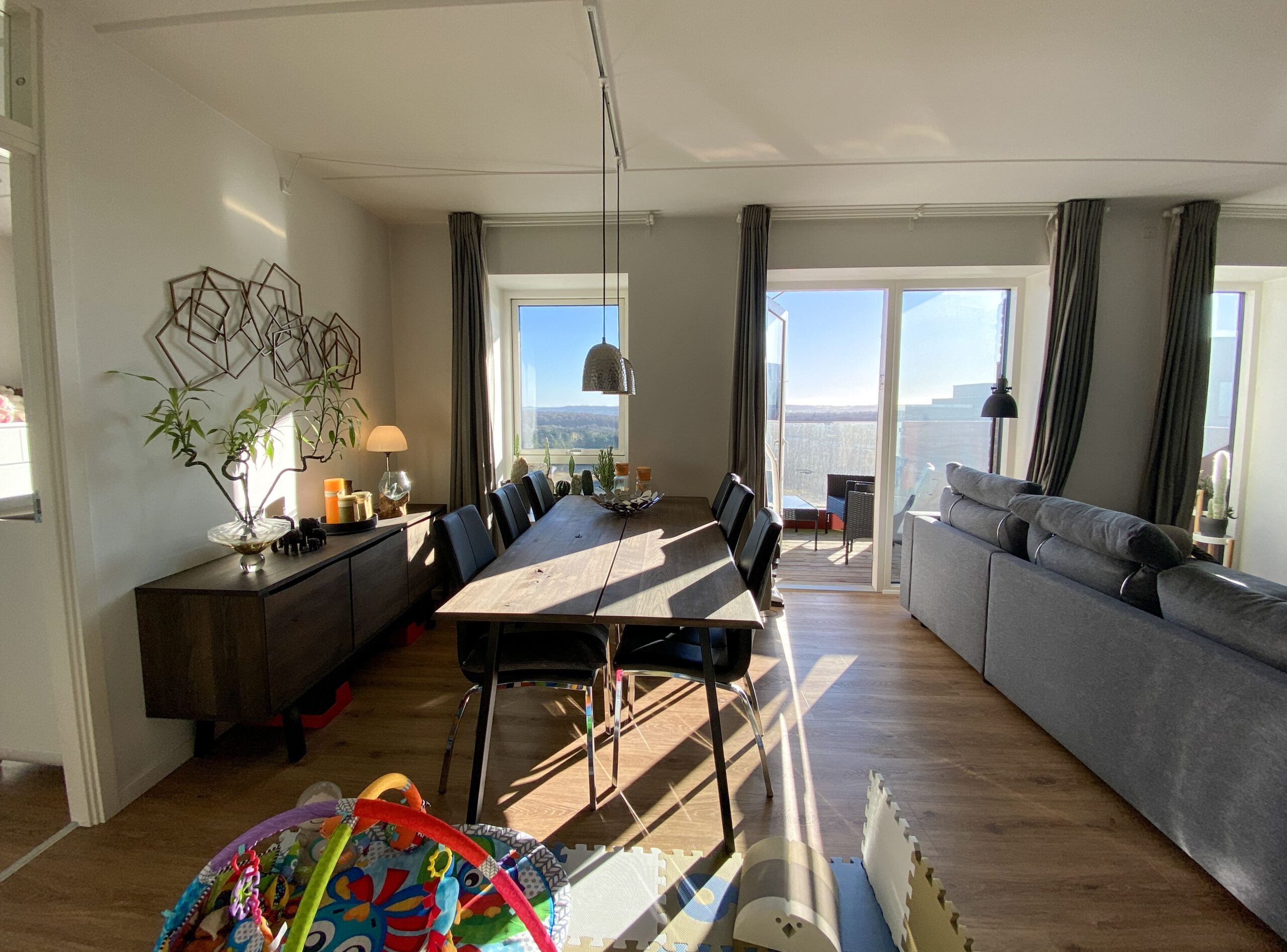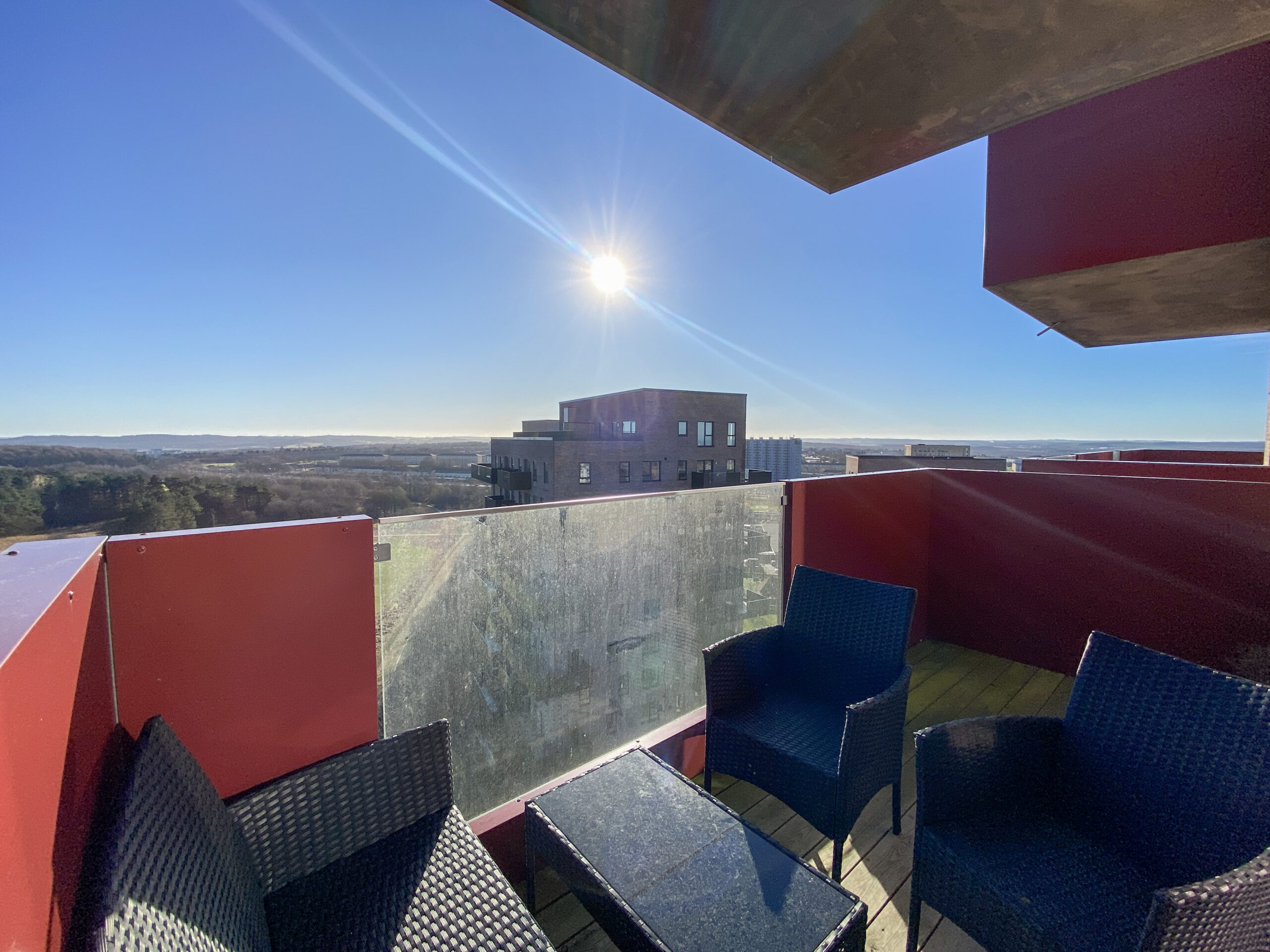 Velkommen til denne imponerende og moderne lejlighed på hele 111 kvm, beliggende højt oppe på 12. sal i det attraktive Egeparken. Her får du komfort, kvalitet og udsigt i særklasse – alt sammen i grønne og bynære omgivelser.