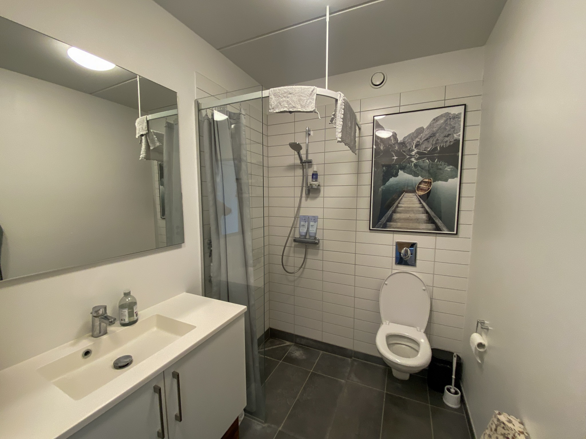 Lejligheden er udstyret med et elegant Svanekøkken med alt i moderne løsninger samt et stilfuldt badeværelse, der er klargjort til vaskesøjle. Overalt i boligen er der lagt vedligeholdelsesfrie gulve og installeret gulvvarme, hvilket giver en behagelig og praktisk hverdag – året rundt.