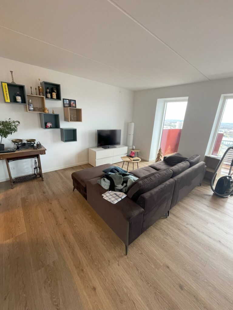Med en fantastisk beliggenhed i Egeparken – lige ved siden af den naturskønne Golfparken – finder du denne stilfulde og moderne lejlighed på hele 93 kvm. Beliggende højt oppe på 13. sal får du en enestående udsigt over Aalborg og masser af dagslys fra den sydvendte altan.