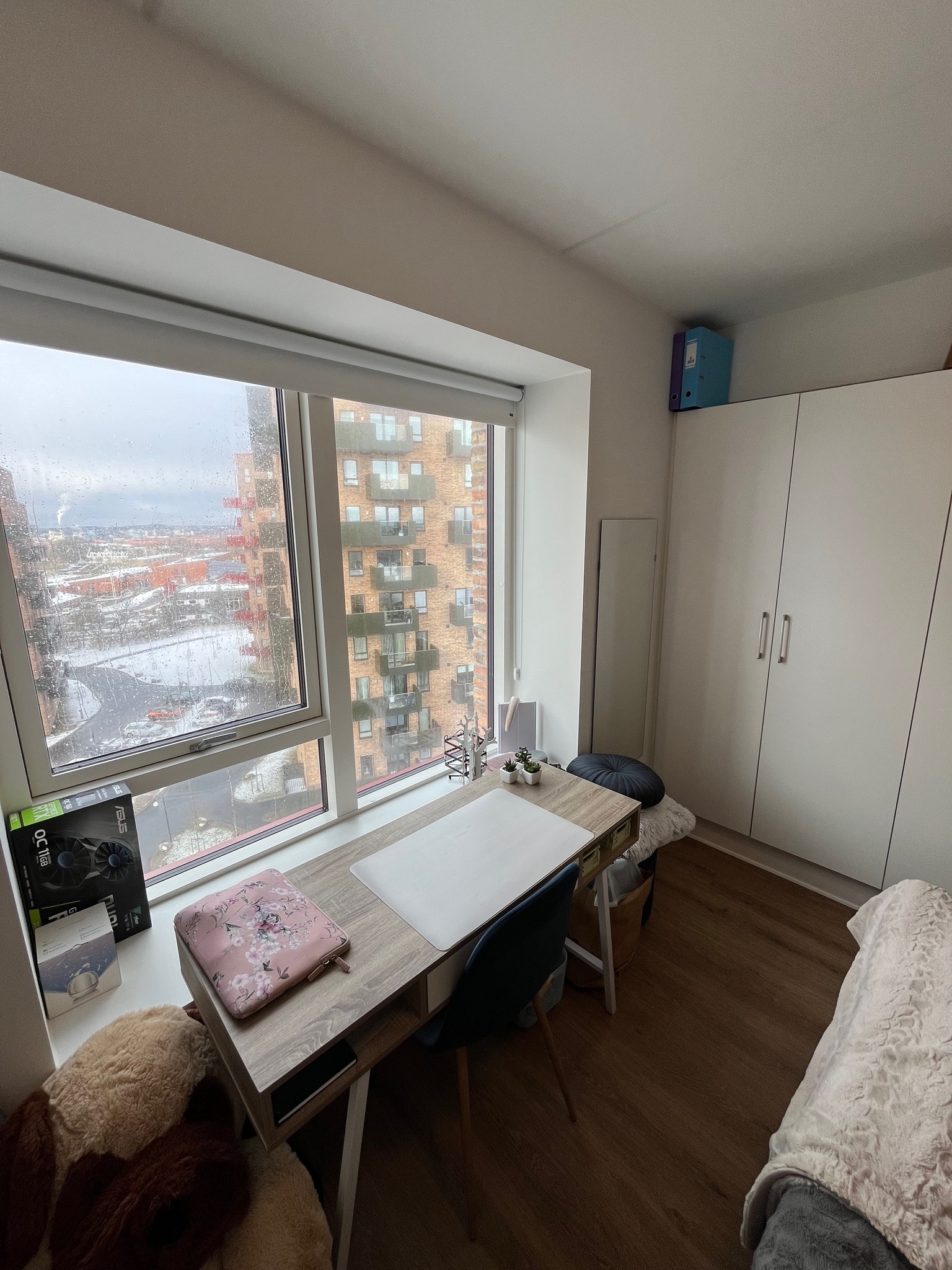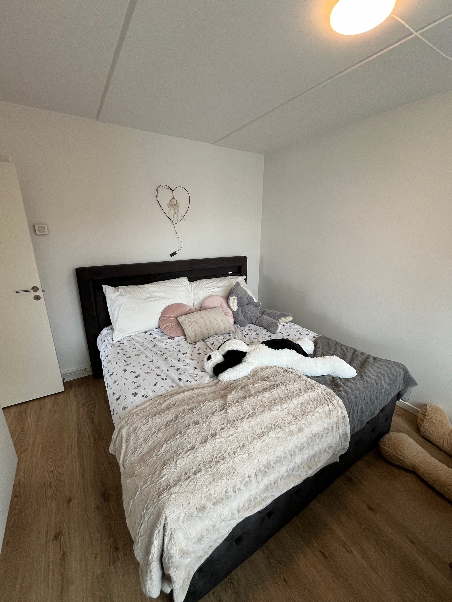 Fra stuen har du adgang til soveværelset, der er udstyret med masser af skabsplads.