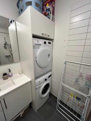 Der mulighed for at installere vaskemaskine og tørretumbler på badeværelset.