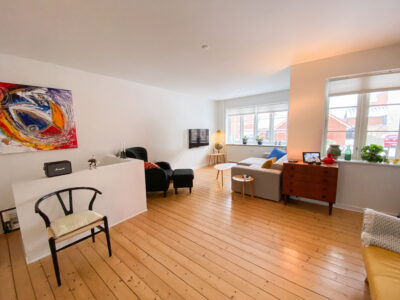 Ejendommen tilbyder desuden gode fællesfaciliteter, herunder et depotrum, et tørrerum og en stor, velholdt fælleshave, som deles med to andre lejligheder. Denne lejlighed er et oplagt valg for dig, der søger et lyst, moderne og indflytningsklart hjem med plads til både hverdag og hygge.